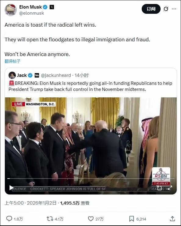 最新消息,马斯克暗示将全力资助共和党:若激进左翼赢了,美国将不再是美国,主要是特