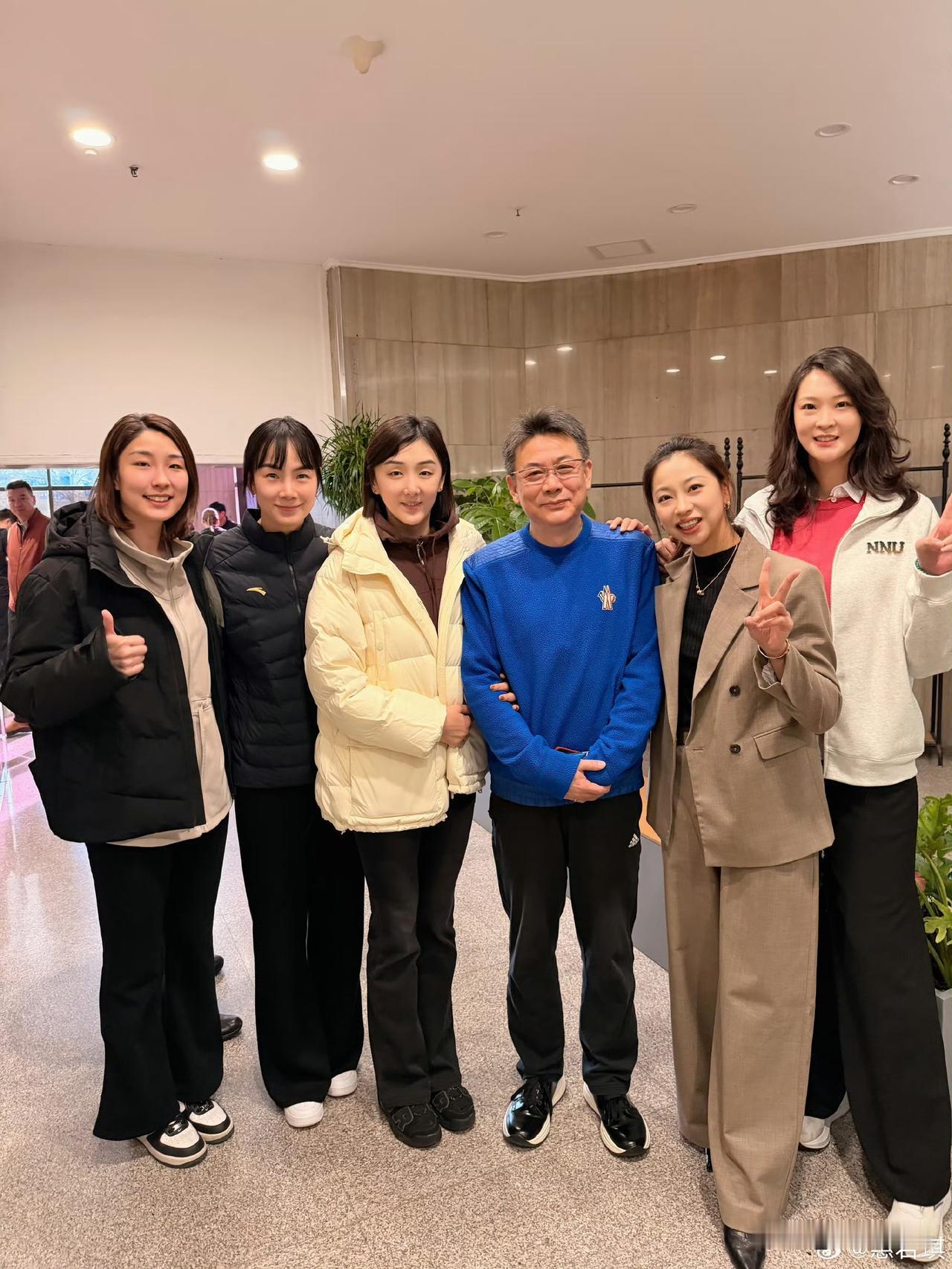 难得一见的排球人合照,从左往右:殷娜,刘梦雅,王男,蔡斌,王茜,惠若琪,多数从事教练职业,也有走仕途的。 2020年4月起,殷娜正式担任天津女排助理教练,主要负责指导年轻队员和协助训练工作。 刘梦雅是云南女排主教练。 2017年,王男在完成全运会后选择退役,并进入山东女排教练组,开始从事教练工作。 蔡斌上海女排主教练。 王茜任职于天津市排球运动管理中心,担任副主任职务;于2025年12月起,正式出任天津女排领队。 惠若琪目前的主要工作是担任南京师范大学体育科学学院副教授及硕士研究生导师,同时担任江苏省青年志愿者协会会长。