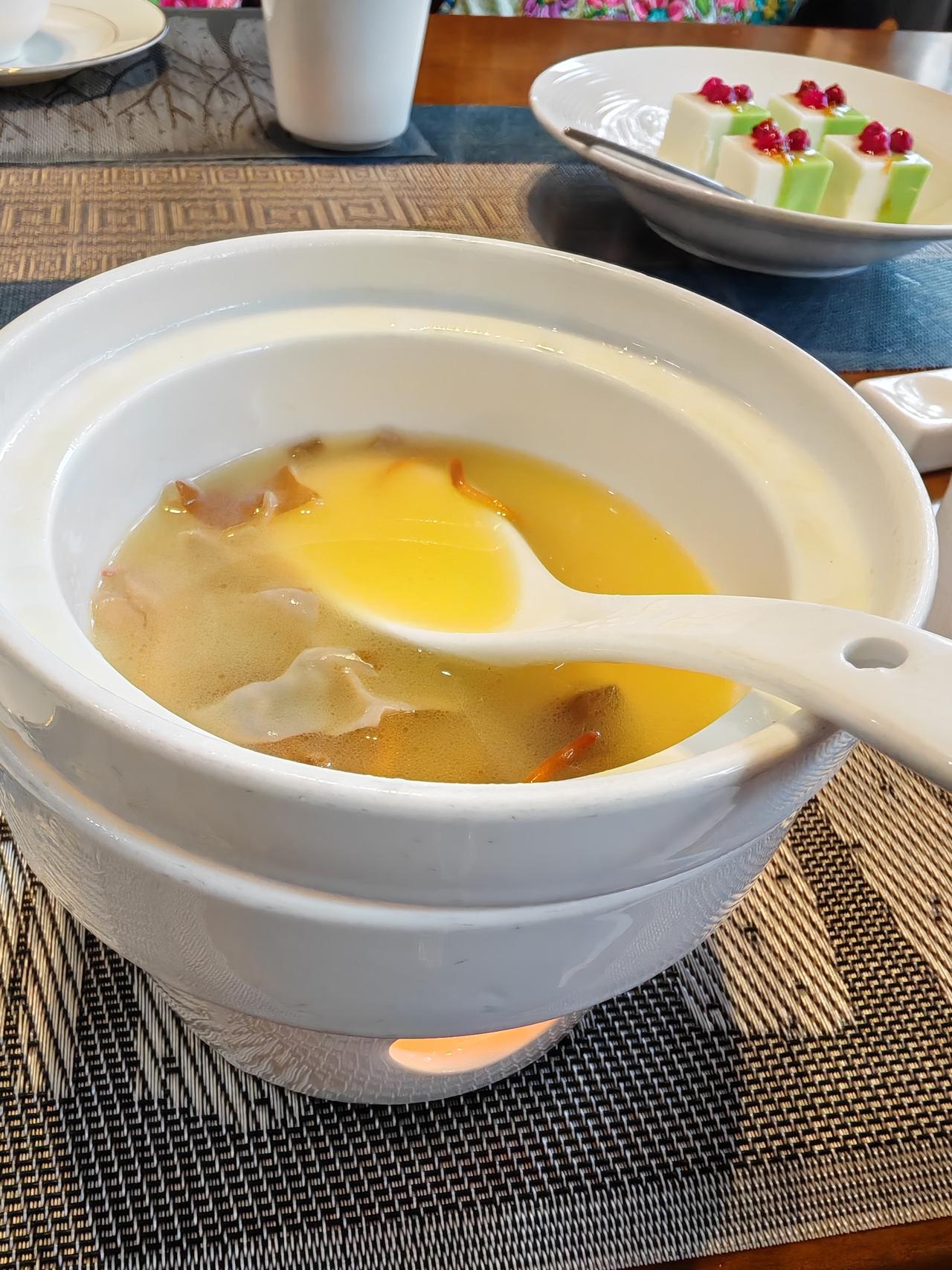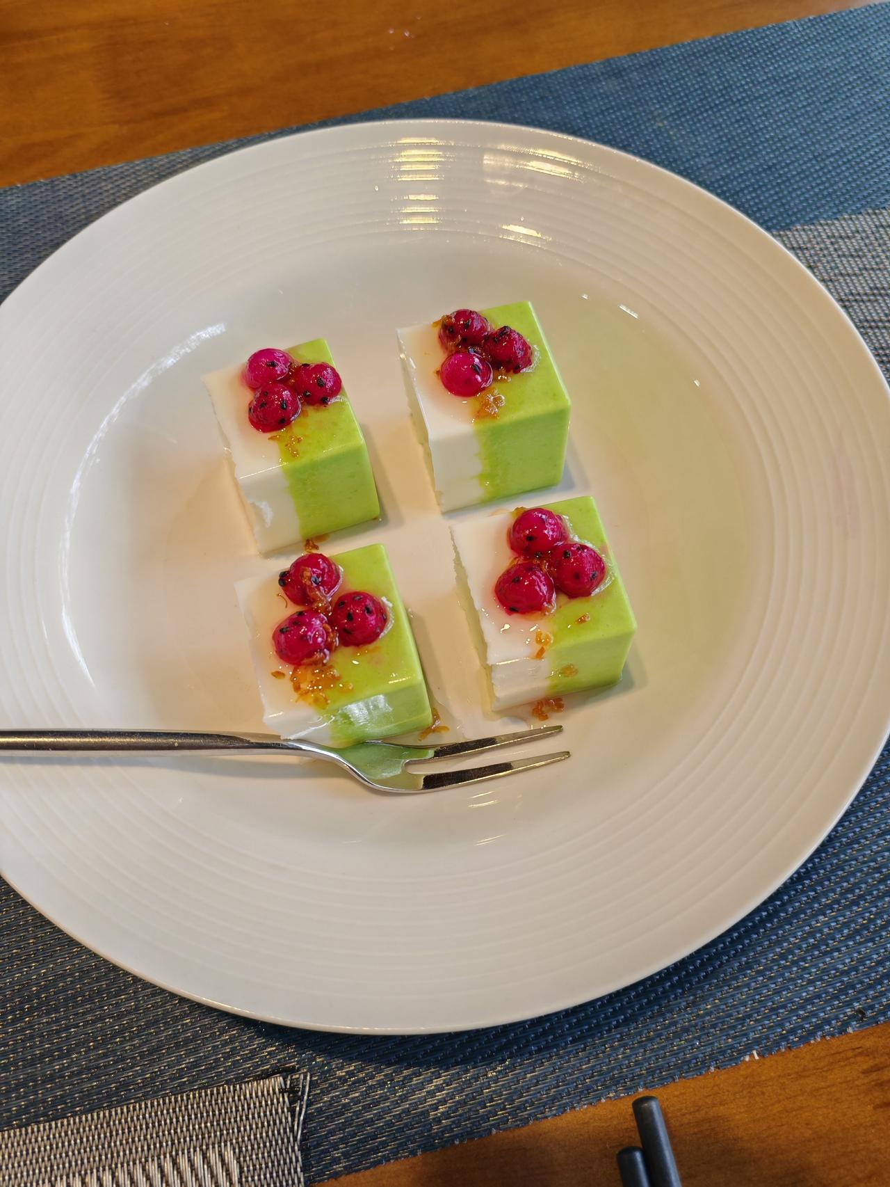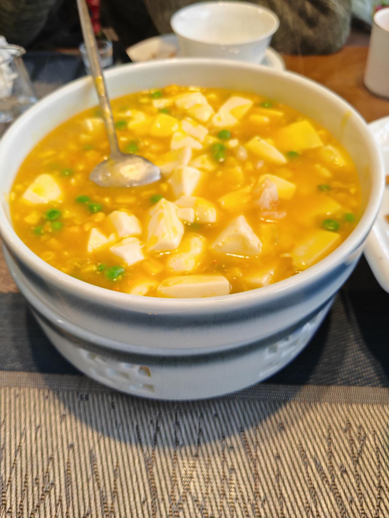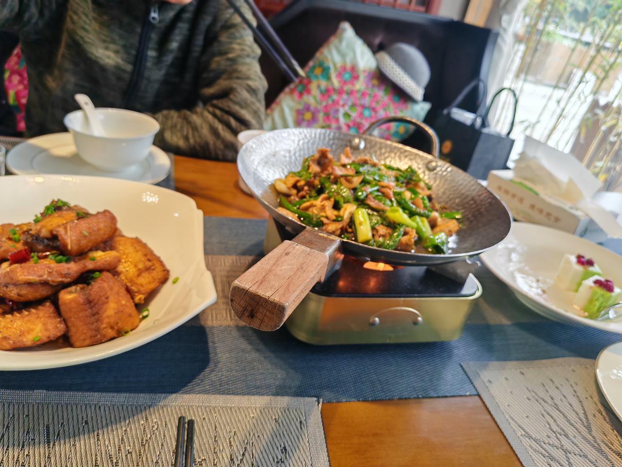我们新年第一次下饭馆,是在家附近的颐和私募菜。 在美团上面买了个112元的套餐 ,有一个凉菜,椰香青豆慕斯,品相特别好看,味道嘛,一般般。热菜有农家小炒肉、香煎糍粑鱼、蟹黄自制豆腐、清炒菠菜,汤品是 一品杂菌汤,(2位) ,五常大米饭 (2碗) ,还有纸巾、颐和私藏茶、 水果拼盘。 三个人还没吃完,把水果和糍粑鱼打包回来了。吃饭的时候,我家那位杞人忧天,总怕老板没钱挣,这个店会垮掉,家附近就没有这样雅静实惠的地方吃饭了。 我觉得这里生意还不错,我们吃饭的时候还有客人在预订年夜饭。