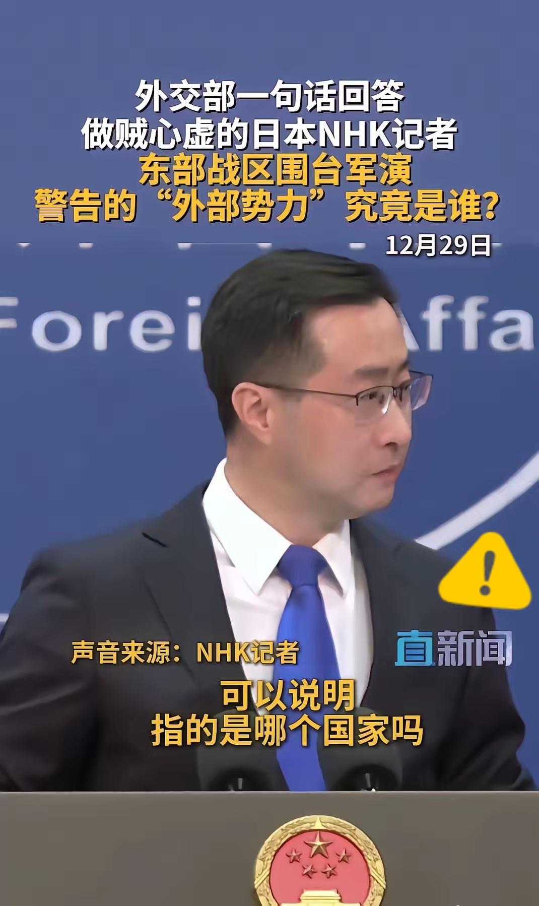 NHK记者还装啥糊涂?我方发言人三个灵魂拷问,早把答案说透了! 台湾问题是中国家事,哪轮得到外部势力指手画脚?可偏有人揣着明白装糊涂,一边频频越线挑衅,一边还想撇清关系。 看看谁在跳得最欢?首相喊着“台湾有事”煽风点火,议员扎堆窜台搞勾连,军费预算飙到历史新高忙着扩军,这三连操作简直把“挑衅”写在脸上。 我方的回应从不是空话,红线就是底线,谁碰谁就得付出代价。别以为搞些小动作就能撼动统一大势,也别觉得装无辜就能蒙混过关,所有挑衅行为都被看得一清二楚。 其实答案早就摆在台面上,只是有人不愿承认罢了。你觉得这些越线操作能得逞吗?