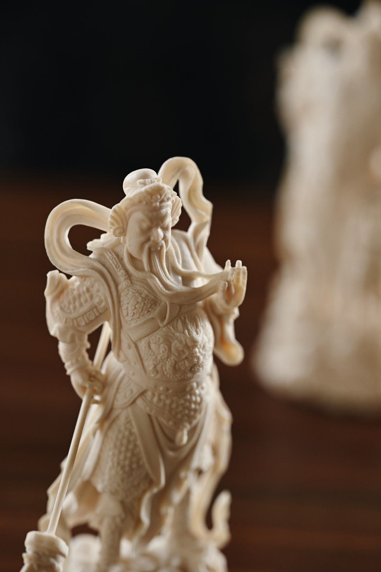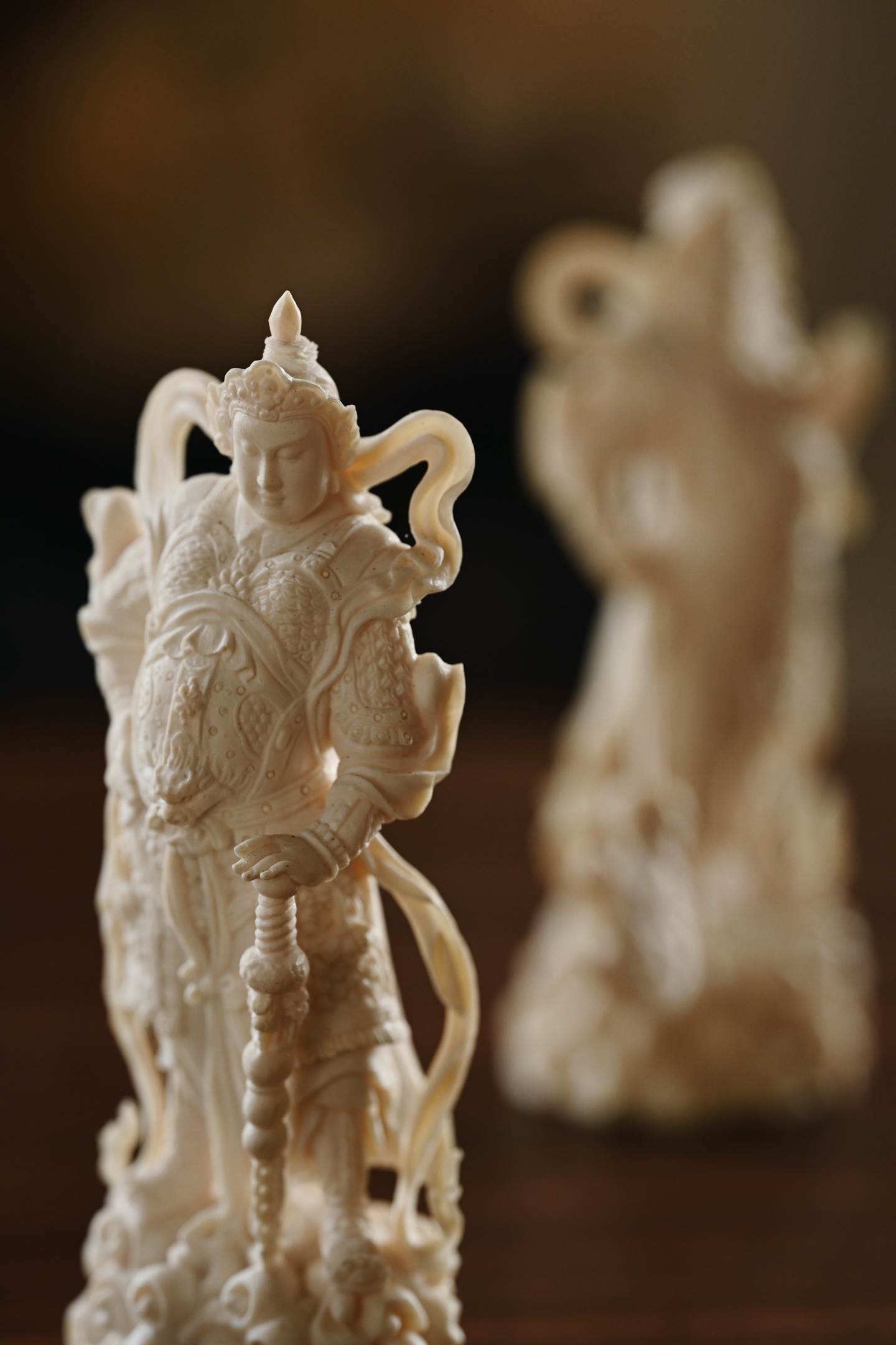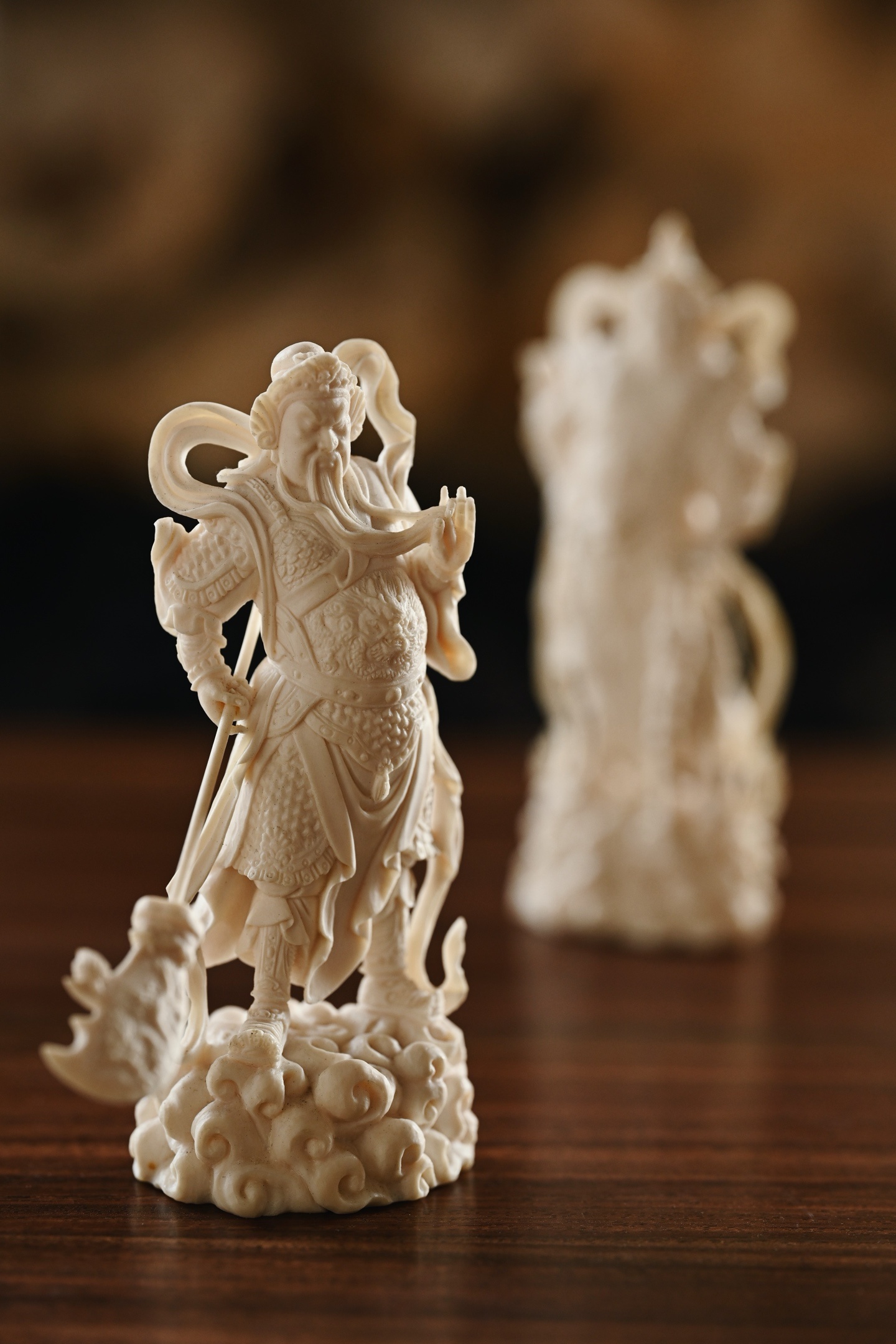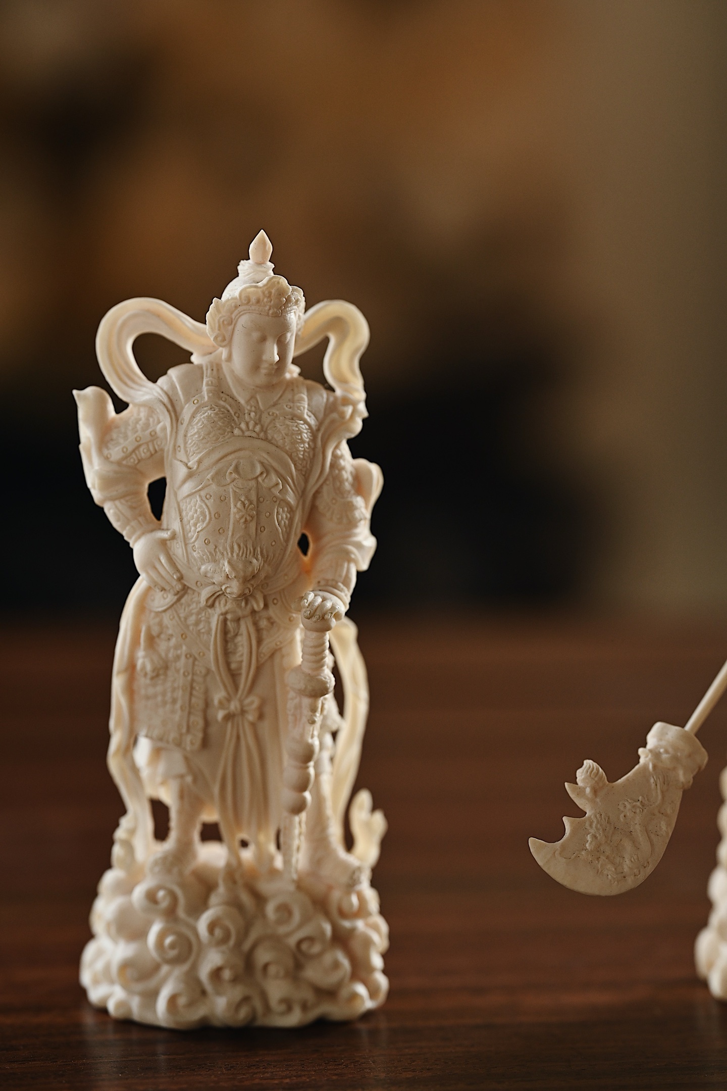 猛犸 | 伽蓝、韦陀 一对择选清润好料雕刻,韦陀身穿甲胄,手拄金刚杵,威风凛凛。伽蓝铠甲覆身,手握青龙偃月刀,足踏云靴,不怒自威,造像庄严肃穆,气度威严。韦陀4*3.2*10.3cm 64g关公4.3*3.5*10cm 68g