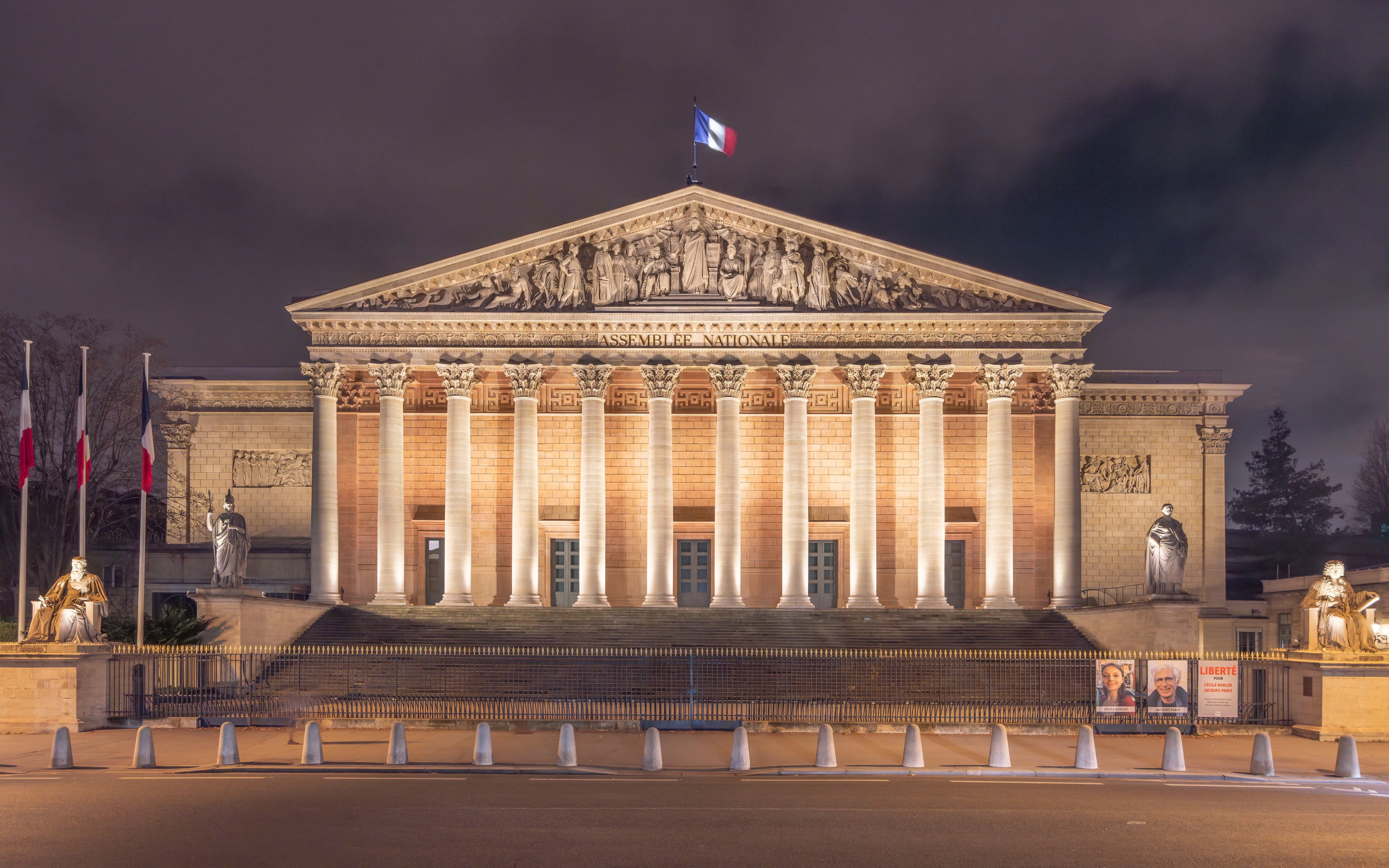夜色下的玛德莱娜教堂和波旁宫