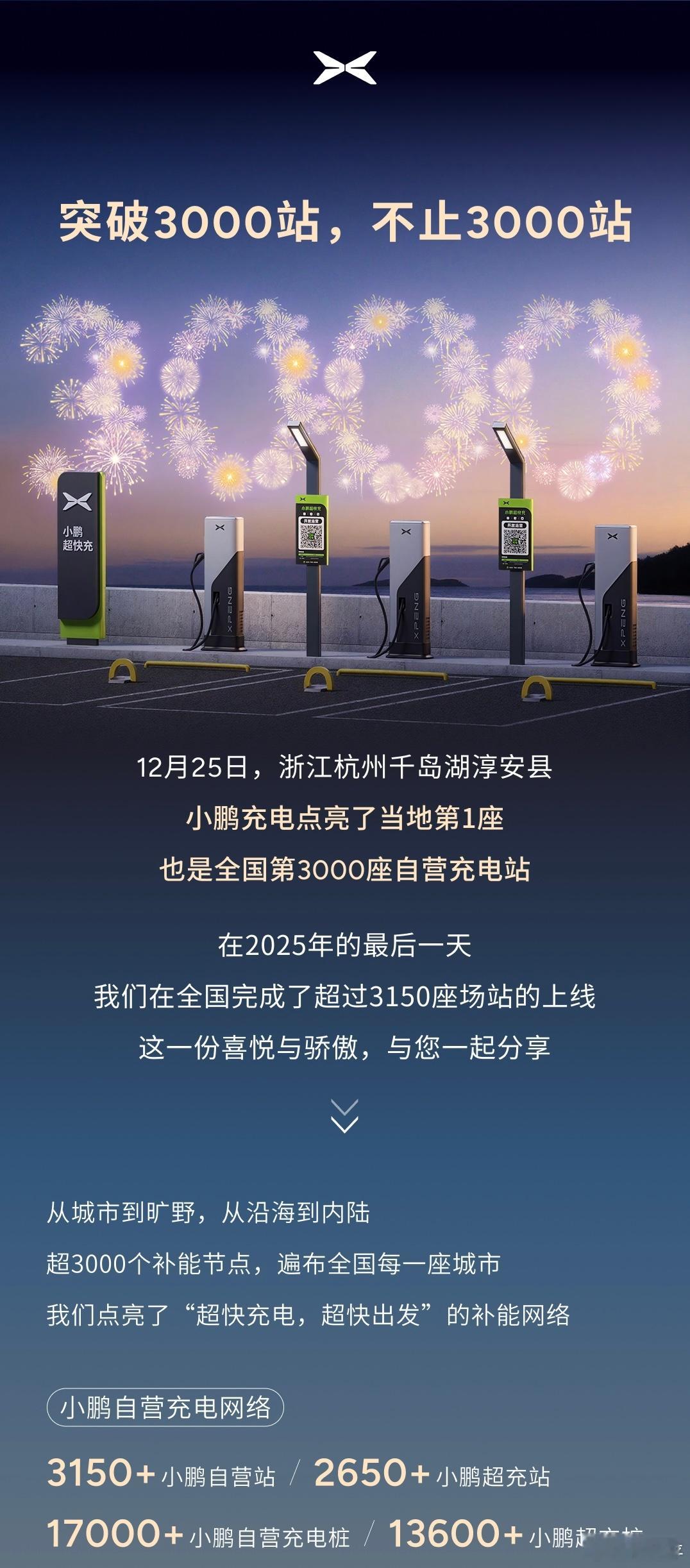 小鹏自营充电站突破3000座了,以前我对这些数据没啥太大的感觉,除非它在我家这边建一座。结果小鹏真的建了一座,还能说什么,牛批。新能源汽车