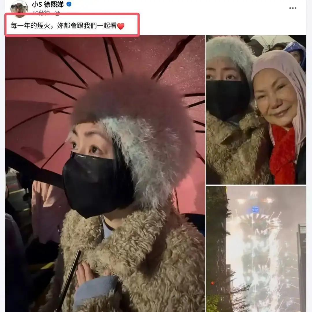 跨年夜没她,第一秒就崩 大S走后第一个跨年,小S凌晨零点发了一张照片:她和妈