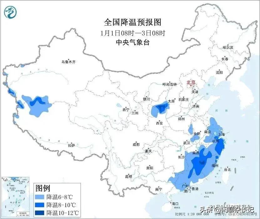 未来几天,青藏高原中东部、西南地区东部、西北地区东南部等地仍多小雨雪或雨夹雪,局地有中雪或大雪。3日前后,西北地区东南部、河南西部、湖北西部等地有小到中雪(雨)或雨夹雪。 受寒潮天气影响,未来几天,冷空气将继续影响我国中东部地区,陕西中北部、山西西南部、江淮中东部、江南中东部、华南北部和东部等地日平均或最低气温将下降6~8℃,江西南部、福建西部等地部分地区降温可达10℃。