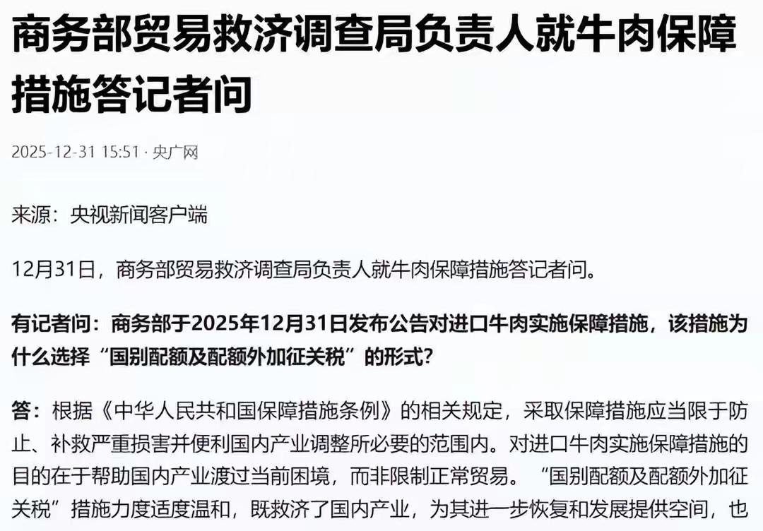 澳插手台海刚放狠话,中国反制就到!特殊待遇叫停,这下亏大了 5600公里外的台海,澳大利亚非要凑热度?前脚刚联合盟友炒作“台海关切”,后脚就收到中国的反制噩耗,堪称“嘴炮一时爽,买单火葬场”的典型! 澳方打得一手如意算盘:既想抱紧美国大腿当“印太马前卒”,又想保住中国市场的红利,美滋滋搞“经济靠华、政治反华”的两面派。可他们忘了,中国的核心利益从不是可以讨价还价的筹码。中方直接亮剑,2026年起暂停澳牛肉特殊保障措施,年配额砍至20万吨,超配部分加征55%关税,这对上半年对华出口就达12.9万吨的澳牛肉业来说,无疑是灭顶之灾。 要知道,中国是澳30%出口的目的地,农产品、铁矿石都依赖中国市场,而中国早已手握巴西矿产、多国农产品等替代选项。这次反制不是针对合作,而是敲打霸权跟班:想赚中国的钱,就别砸中国的锅! 锐利焦点 台海是中国内政,谁插手谁买单!澳大利亚的教训已经摆在这里,那些还想跟风挑衅的国家该醒醒了。你觉得这次反制能让澳方收敛吗?如果其他国家敢效仿,该怎么让他们付出代价?来评论区聊聊你的硬气看法~澳大利亚 台海问题