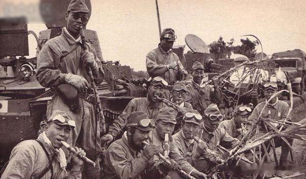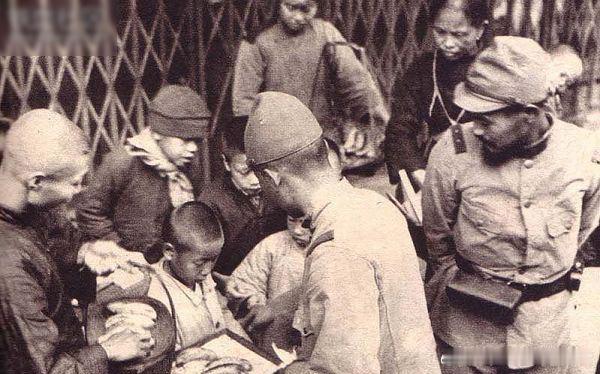 照片中老老实实站在墙边的是抗日战争时期被八路军俘虏的两名日军。当时俗称“小鬼