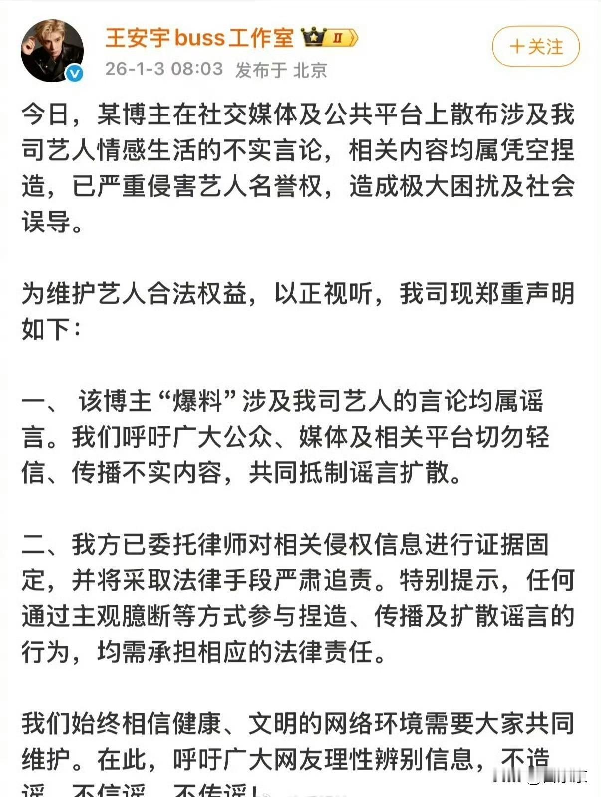关晓彤王安宇恋情爆光?假的!这挡枪太明显。开年大瓜反转来得太快!网友司晓迪刚爆料关晓彤王安宇在一起,王安宇工作室就火速辟谣纯属谣言,CP粉心情像坐过山车。 细看时间点,这瓜馊得可疑。 关晓彤感情动向频传猜测,王安宇新剧正在宣传,此时曝恋情被指转移视线。 此前狗仔也证实两人私下零交集,女方行程均由妈妈陪伴。 娱乐圈恋情瓜套路深,不是为新作造势,就是为人挡枪。 粉丝们嗑了个寂寞,正主亲自打脸。 说到底,演员靠作品立身,这类空穴来风,看个热闹就好。 下次再见类似传闻,不妨坐等官方回应,毕竟工作室声明比网上爆料靠谱得多!