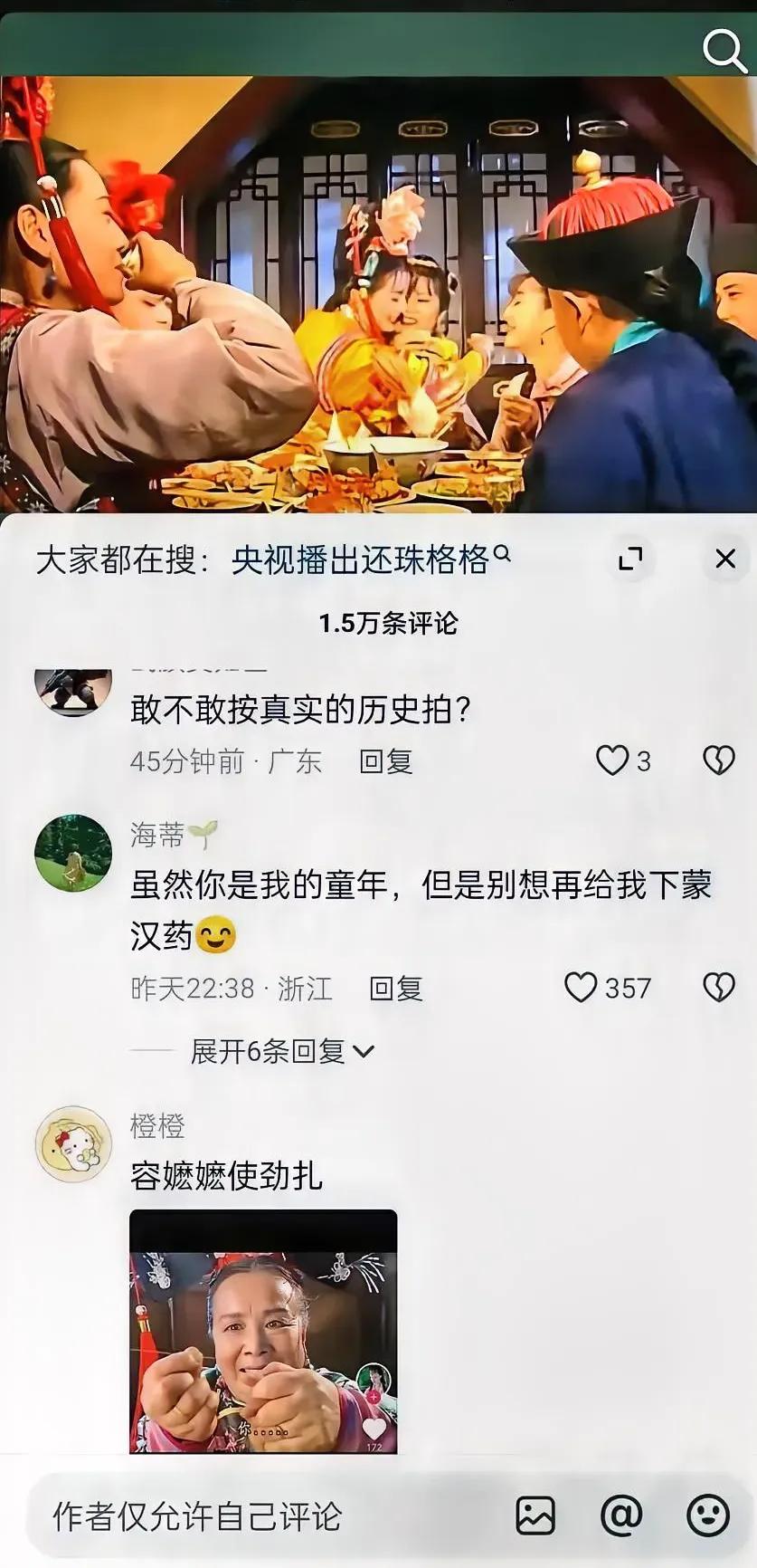 还珠格格重新上映…… @还珠格格 于2025年底开通了官方账号,发布了两条视频,却惨遭几万条评论抨击,直接“自闭”了。 在这一关键时刻,事情几乎已到摊牌阶段…… 有网友直接开喷:敢按照真实历史来拍吗? 以前追《还珠格格》《康熙王朝》时有多上头,现在回头看就有多膈应——不是讨厌清朝历史,是受不了清宫剧的“洗白滤镜”太离谱! 明明是让沿海百姓流离失所的迁界禁海,被拍成“为民着想”的仁政;明明是禁锢思想、杀人如麻的文字狱,剧里只字不提,满屏的“奴才给主子请安”,把森严的主奴关系包装成“职场智慧”,美化专制的叙事,不仅误导年轻人,更是对民族记忆的不尊重。 现在大家历史认知越来越清醒,谁还愿意为虚假的“盛世幻梦”买单?