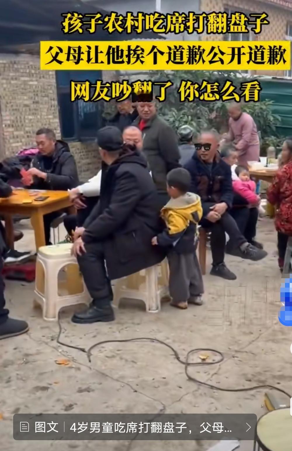 近日,四川雅安一名4岁男童吃席时打翻满桌盘子,妈妈严词教育后,孩子哭着多次向村民道歉。后来,小朋友又在爸爸的陪同下,再次哭着向众人道歉、鞠躬 而后其爸爸表示,孩子哭是因为他还小,不能控制情绪,“哭没有问题,但该承担的责任要继续承担,娃儿还小不是借口” 大家觉得这样的教育合适吗?请发表评论 .
