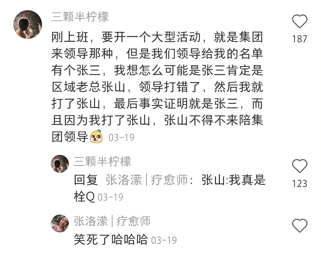 我们领导给我的名单有个张三,我想怎么可能是张三肯定是区域老总张山,领导打错了,然后我就打了张山,最后事实证明就是张三,而且因为我打了张山,张山不得不来陪集团领导