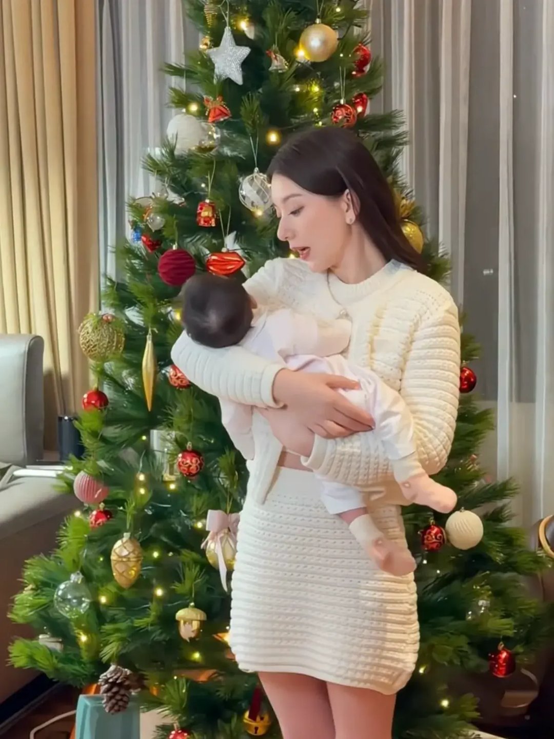 方媛抱三胎女儿出镜庆,称三宝比自己还美,会做不偏心的妈妈