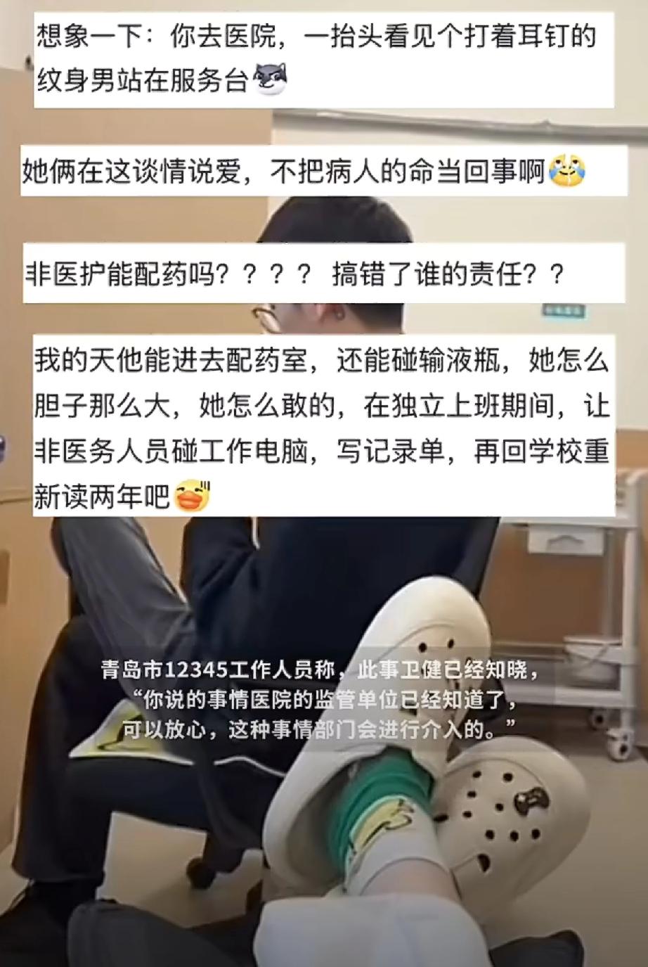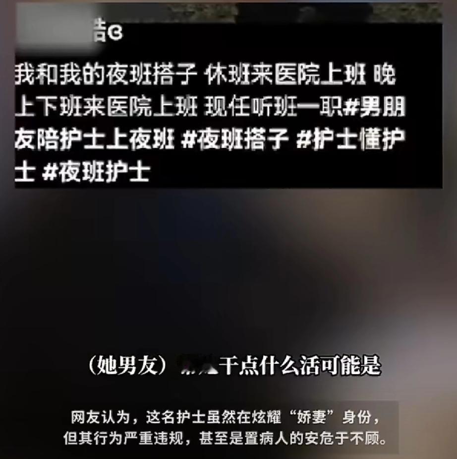 拿患者的命秀恩爱,这护士的脑子怕是真有问题。 事儿发生在山东青岛,圣德脑血管病医院。一个值夜班的护士,非把男友叫到病房区,还拍了段视频炫耀。 视频里,那男的穿着便服,满胳膊纹身,在护士站晃来晃去,帮她搬东西、揉肩膀,还趴在那儿写护理报告,最离谱的是,他居然动手给点滴瓶贴标签,配药。 配文更是离谱到没边:“我和我的夜班搭子,现任听班一职。”听听,这语气,好像让男友来医院“顶岗”是件多光荣的事。 网友们炸锅了。懂行的人直接开骂:“配药贴标签是人命关天的事,专业护士都得‘三查七对’,他一个外行懂个啥?万一把葡萄糖贴成生理盐水,糖尿病病人输进去,直接就能昏迷!” 更膈应的是,治疗车上还放着香烟和私人生水杯,这哪像个医疗场所,简直把医院当自己家客厅了。 眼瞅着舆论压不住,这护士赶紧清空账号,可网友早把截图存得明明白白。顺着线索一扒,连她和男友的正脸照都传开了。 1月2号晚上,医院工作人员回应,轻飘飘甩出一句:“她脑子有问题,这不是小事,会严肃处理。” 这话一出,火更旺了。网友质问:“脑子有问题还能考下护士证?平时医院都没人查岗?外人能随便进病房区碰药品器械,到底是员工没脑子,还是管理漏洞大到离谱?” 好在1月3号,青岛市卫健委发布通报,涉事护士违反工作纪律,已被停职,卫生健康监督执法部门介入调查。 可大伙儿心里的疑问还没解开:入职一年了,难道没接受过“严禁非专业人员参与医疗操作”的培训?医院的门禁、日常监督,是摆设吗? 医疗这行,从来不是秀恩爱、博眼球的地方。每一个操作都连着患者的生死安危,护士证考的不只是专业能力,更是对生命的敬畏心。 为了显摆恩爱,把患者安危抛到脑后,让外人碰医疗核心工作,这不仅是违规,更是踩着职业底线胡来。 这事儿给所有医疗从业者敲了个警钟:秀恩爱去别处秀,别拿病人的命当背景板。医院的管理层也该醒醒了,门禁不严、监督不到位,出问题是迟早的事。 守住医疗安全的底线,靠的是实打实的制度,不是出事后一句“脑子有问题”就能甩锅的。