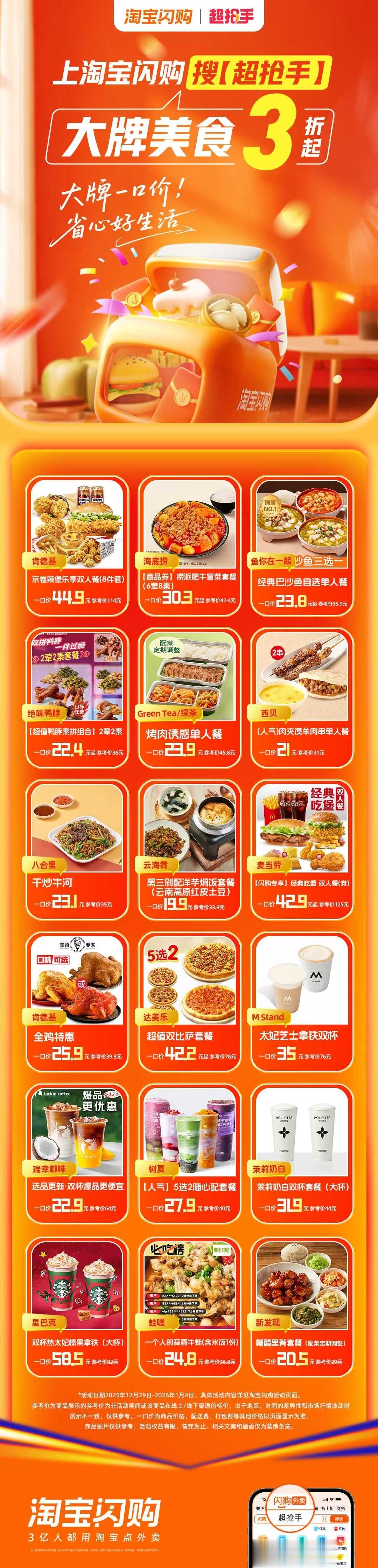 元旦家宴不知道吃啥?看这里! 海底捞捞派肥牛冒菜套餐31.3元起,堪比堂食的丰富口感;达美乐超值双比萨套餐周末42.2元起,两种口味满足全家需求。超抢手严选大牌,免去选择困难,欢聚时光就该省心点。省下张罗饭菜的心思,留给和家人的温馨聊天。上淘宝闪购搜【超抢手】,大牌美食3折起!你家元旦餐桌上必不可少的一道菜是?