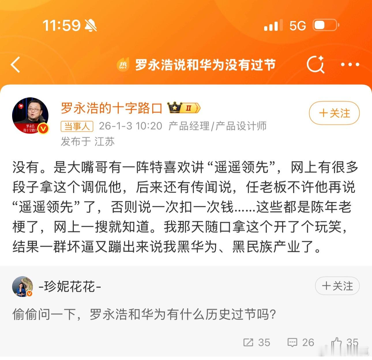 罗永浩否认和华为有过节随口提一次,上个热搜。再辟谣澄清一次,又上个热搜。反反复复来来回回轻轻松松赢两次,上热搜就如同呼吸一样简单