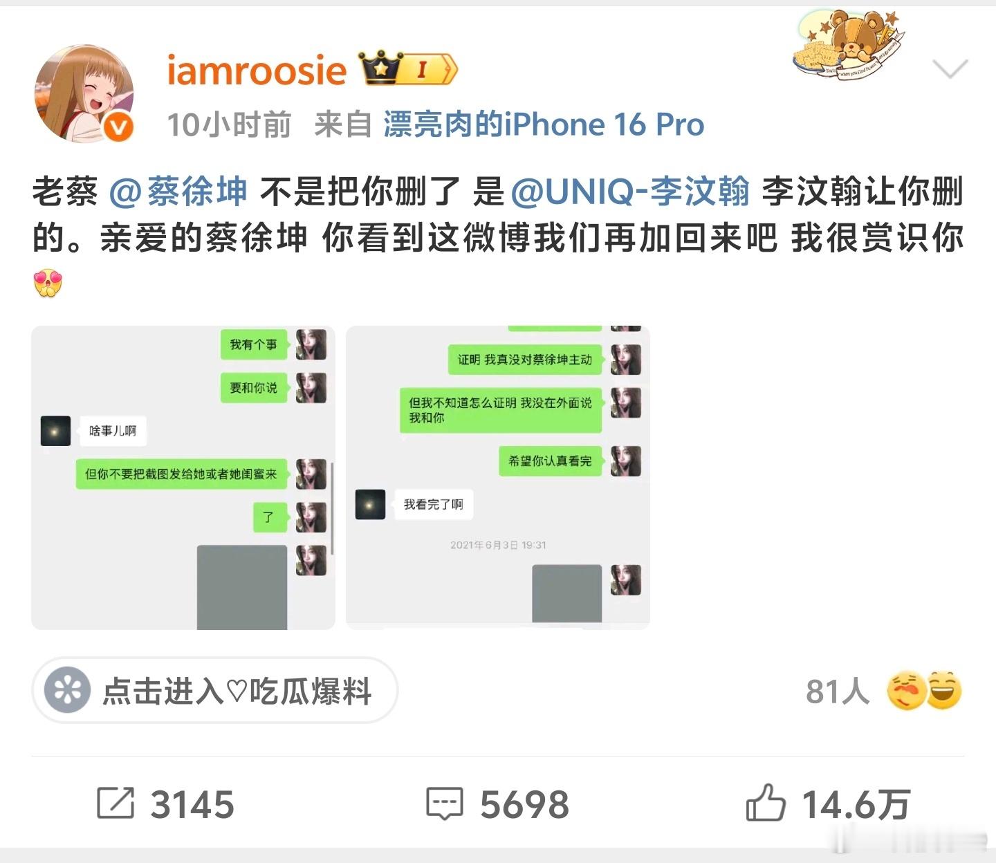iamroosie这么疯狂吗???鹿晗 檀健次 蔡徐坤???人家都是一个圈子的,怎么会去找同一个人??感觉有点儿不现实吧!