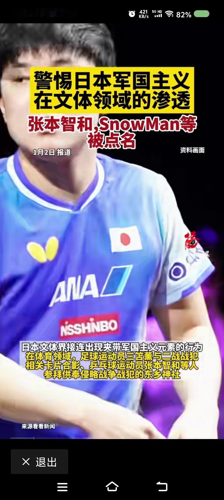 警惕日本军国主义复活!—— 据报道,日本文化、体育界一些人被日本军国主义渗透。如张本智和参拜供奉战犯的神社…… 点评: 自作孽不可活。