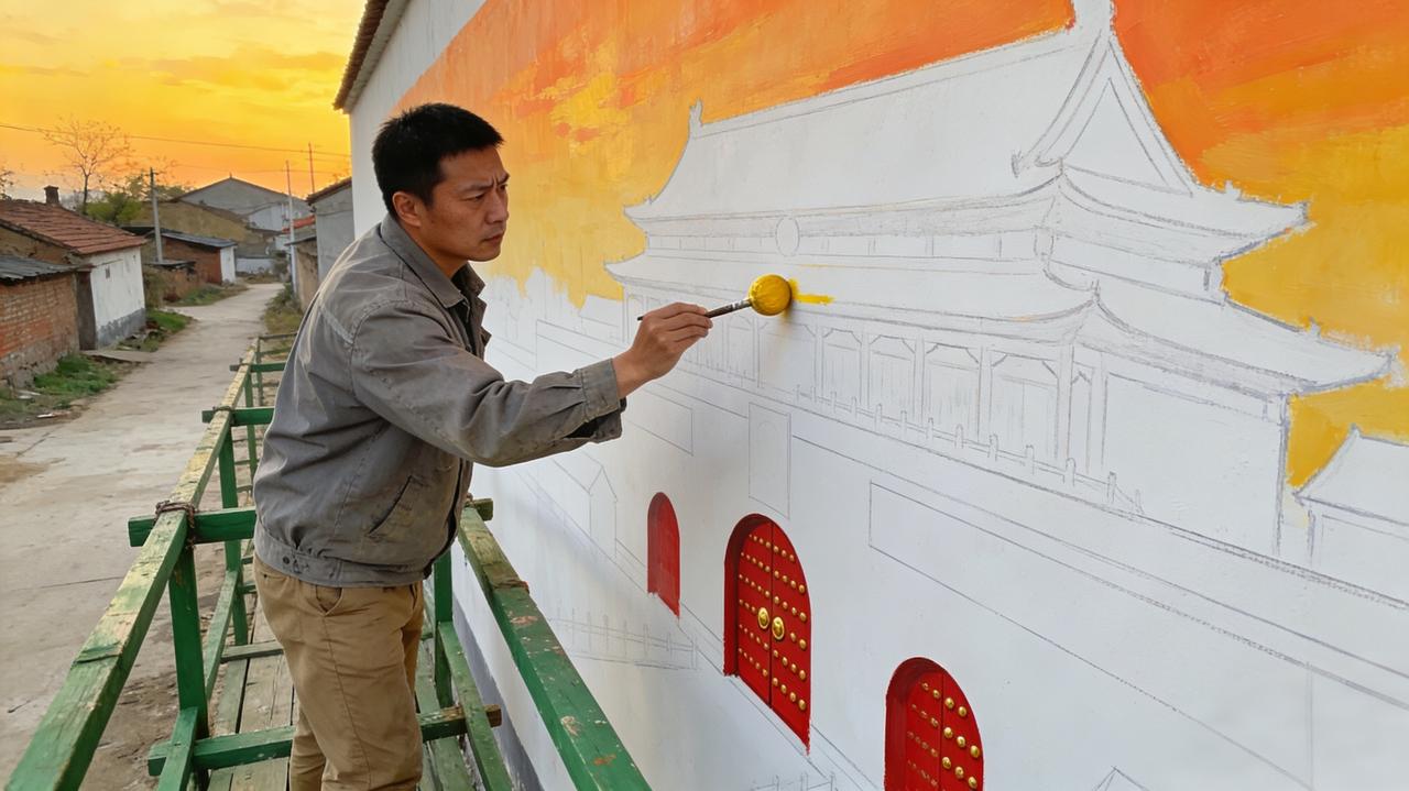 河南“天安门”墙画村爆火,商贩一天狂赚2万!背后的故事太动人 谁能想到,一幅墙画能让一个豫东小村在元旦假期涌入5万游客,更让村里的商贩一天狂赚2万?这不是天方夜谭,而是河南商丘吴营村正在发生的真实故事。 从乡村到网红打卡地的蜕变 在吴营村,一幅由青年画家吴承言创作的18米长、8米高的巨型"天安门"墙绘成了绝对的主角。 元旦当天,这幅墙绘吸引了从各地赶来的游客。他们在画前合影留念,有人激动地说:"跟电视里一模一样!"。 曾经冷清的村庄,如今四条主街道被200余个摊位挤得满满当当。空气中弥漫着烤肉串的香气,玩具摊、棉花糖摊、糖人摊依次排开,热闹得像在过春节。 商贩日入2万,村民笑开了花 爆火的人气让商贩们赚得盆满钵满: • 核心位置的大肉串摊位老板,元旦当天营业额直接冲破2万元 • 经营30年的村小卖部,以前一天只卖几百块,现在营业额翻了10倍 • 外村商贩驱车赶来卖草莓,不到半天就售罄 • 即便是位置稍偏的摊位,单日收入也超过了4000元 村民李玉颖的小超市迎来了销售高峰。她兴奋地说:"饮料零食刚上架就被抢空,以前想都不敢想!"。 艺术背后的暖心初衷 这一切的火爆,源于一个暖心的初衷。创作者吴承言表示,他画这幅墙绘,是为了圆村里老人"亲眼看看天安门"的心愿。 墙绘落成那天,他特意用轮椅推着腿脚不便的老人前来。86岁的吴文明大爷换上干净衣服拍照留念,收到免费装裱的照片后,天天都要去墙前看一看。 这份藏在墙绘里的初心与温情,不仅火了一个村,更"活"了一方经济,成为了乡村文化振兴的生动注脚。河南“天安门”墙画村爆火 乡村振兴新样本