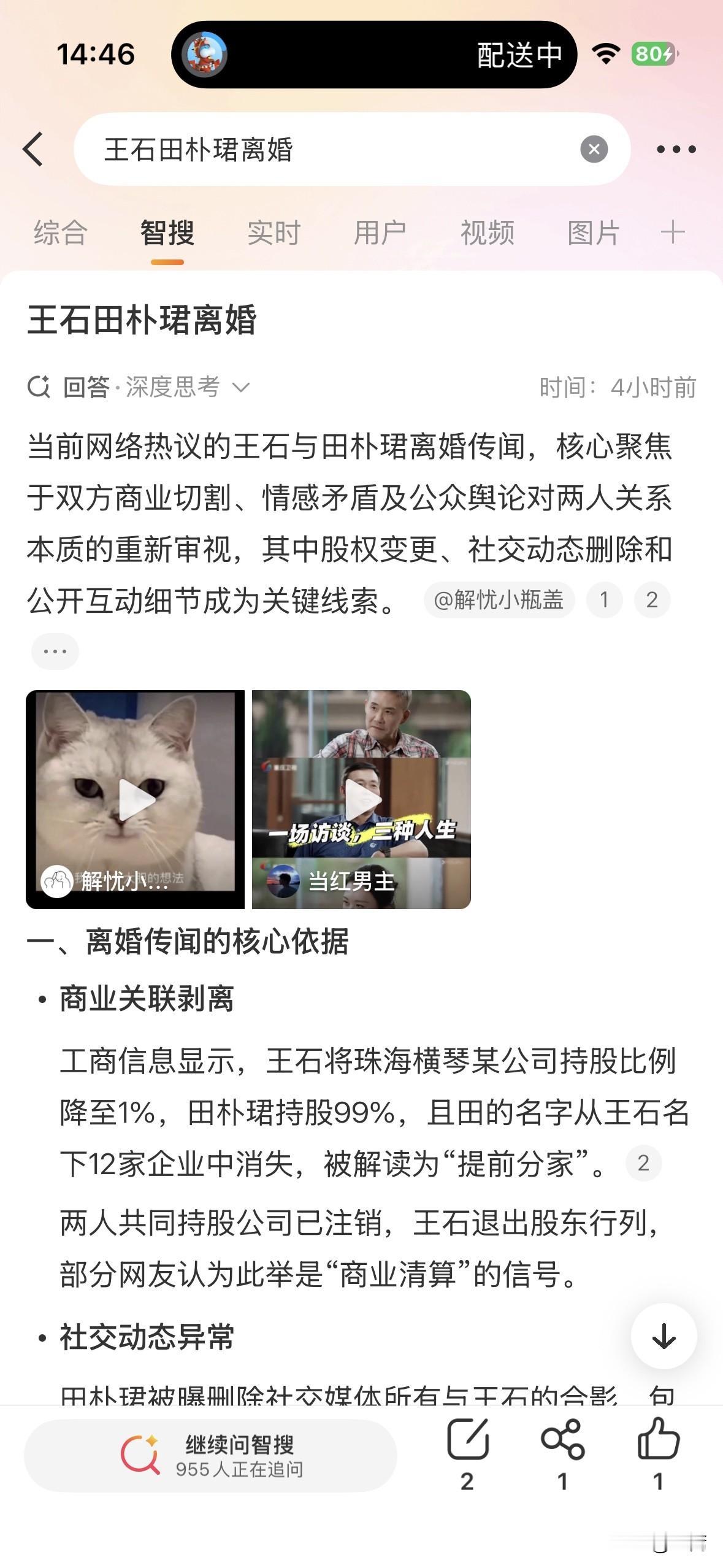 午觉醒来,看到王石田朴珺离婚传闻的消息喧嚣尘上。 其实,他们结不结离不离的,我们真不感兴趣。 看客们心里明镜似的,不过看看热闹罢了。 该做的总结、该总结的教训,给世人留下的财富和经验,也都够出一本书的了。 只是王石,活到70多,才看清恋爱人生的真相,很多孩子十几二十岁,早就看穿了。 长夜漫漫,还有很多时间让老人家仔细咂摸。