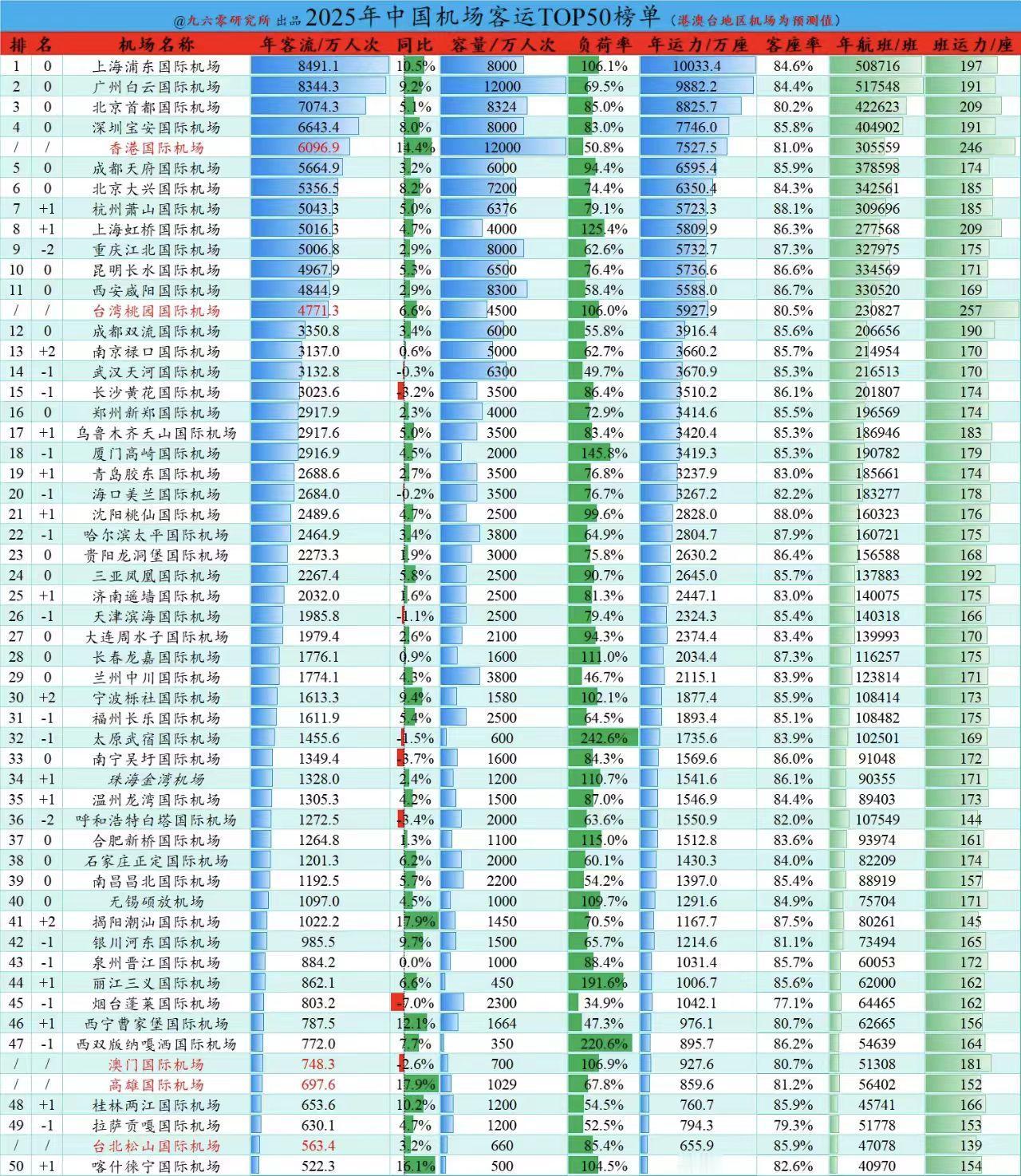 2025中国机场客运量TOP50榜单