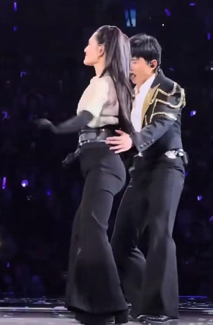 看他俩的表演,我这视线完全被那条裤子给吸走了。这也太紧了吧,把妈妈臀和小肚腩全勒出来了,感觉裤子随时都要被撑破一样。造型师这是怎么想的?难道是没有别的裤子可选了吗?说实话,这身打扮真的不太好看。