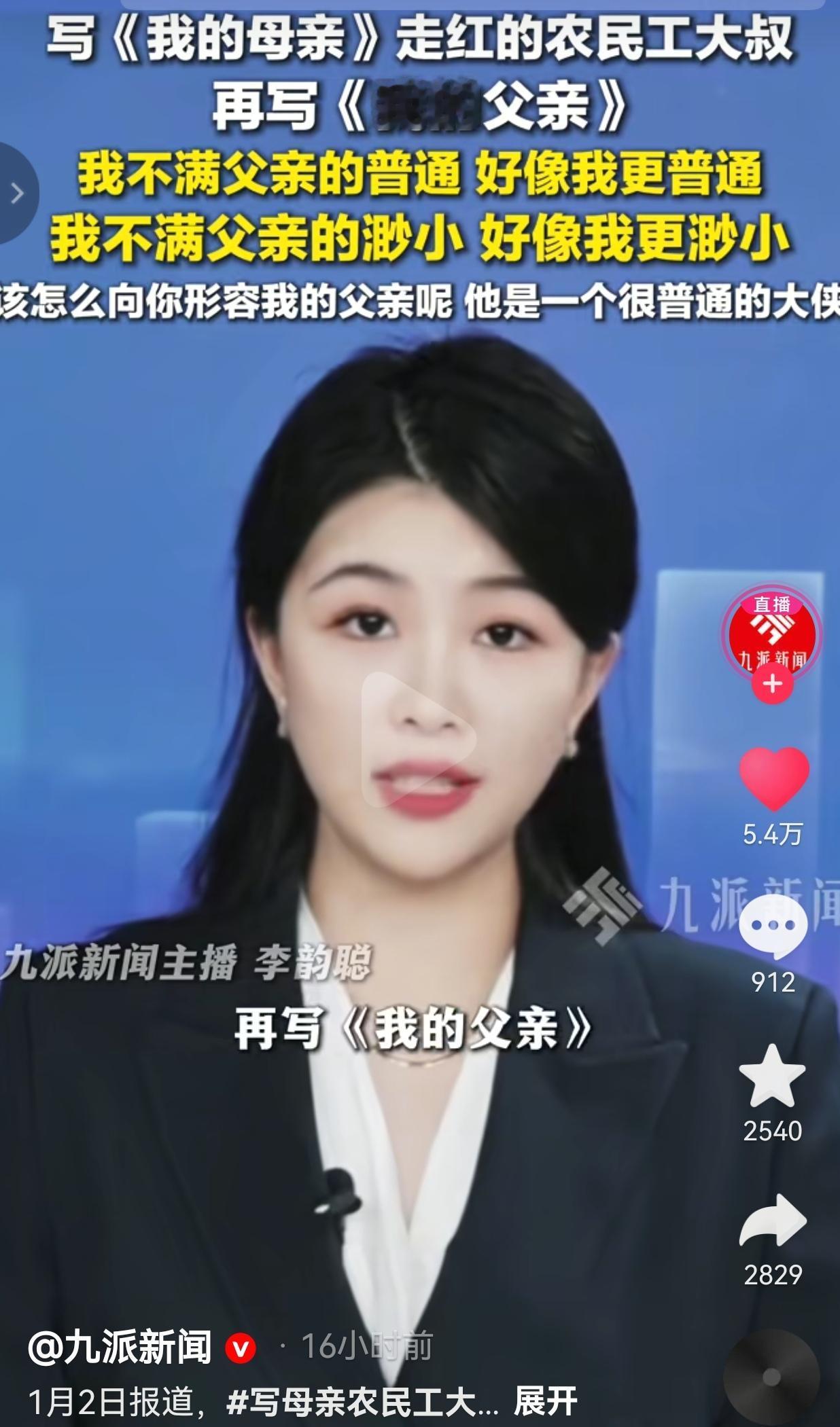 真情实感最感人!2025年一农民工大爷,写了一篇高考作文《我的母亲》,引发全网爆火。近日这位农民工大爷又挑战街头采访写了一篇高考作文《我的父亲》再次被大爷朴实细腻的文字感动了,引发网友热议。网友: 别说了别说了,越看越想哭,现在就给我爸打个电话,问问他晚上吃啥。 近日,曾经因写《我的母亲》爆火全网的安三山大爷,又写了篇《我的父亲》。全文没什么华丽辞藻,几乎都是大白话,就是这样朴实无华的文字,再次迎来无数网友的好评。 在文章中,安大叔说:年轻的时他总嫌父亲普通,回头看看自己,才发现自己比父亲还要普通。以前觉得父亲渺小,后来才懂,自己比父亲更渺小。 在他眼里,父亲就像家里那头老黄牛,闷头干活,话少得很。他小时候喜欢看金庸的小说,心里全是仗剑走天涯的大侠,可父亲那一身土味、满手老茧的模样,跟大侠压根沾不上边。 直到那年冬天的夜里,炉子倒烟,煤灰灌了一屋子,父亲在睡梦里就那么安静地走了,跟他一辈子的性子一样,没吭一声。 父亲走后,日子还得过,柴米油盐、人情往来,桩桩件件都得自己扛。 安大叔学着父亲的样子下地、打工,摸爬滚打撑起一个家,后来自己也当了爹,才真真切切尝到了生活的滋味,才猛然懂了父亲当年的难。 那些年对父亲的嫌弃和不满,早就在日复一日的操劳里,化成了再也补不回来的遗憾。 他这才明白,父亲不是金庸笔下那种盖世英雄,却是护着一家人安稳度日的“专属大侠”。 网友看到后评论说:“这篇文章生动形象的诠释了:从一开始的 质疑父亲,对抗父亲!再到接受父亲,理解父亲,成为父亲!最后发现,不如父亲...…” 还有的网友说:“我爹走了三年了,看到这篇文章突然就绷不住了。他也是个闷葫芦,只会埋头干活,现在我也成了别人的爹,才懂他当年有多难。” 天底下的父亲大概都是一个样子吧。他们没有惊天动地的本事,却把最实在的爱,都给了自己的老婆孩子,他们用肩膀扛起了家里的风风雨雨。 其实,哪有什么平庸啊,平凡的父亲也有最真的爱,他沉默着付出、弯腰干活的那些日常,全都是爱,只是我们以前没放在心上。 所以说。别等失去了才想着珍惜,才知道后悔,趁父亲还在,好好跟他说说话吧。