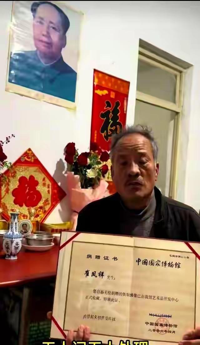 南博余波未平! 国博又爆大瓜! 山东七旬老人崔凤祥,于2006年向国博捐赠一尊家传的明代万历年间鎏金地藏菩萨像,国博出具了捐赠证书。但2009年查询佛像下落,国博始终称:无记录!近20年追查无果!受南博事件推动,他于2025年12月31日持身份证和捐赠证书在网上公开实名举报,要求国博说明佛像去向。 捐赠的文物流落到哪儿去了? 截至到1月3日,国博暂无公开回应。 这尊让老人牵挂近二十年的佛像,并非寻常之物。据了解,它高78厘米、重19.3千克,鎏金完好、品相上乘,是明代万历年间的稀缺臻品。在收藏市场上,同类明早期鎏金佛像的拍卖价常以千万元计,2013年一尊明永乐铜鎏金地藏王菩萨像就曾以1265万元成交。而崔凤祥老人捐赠的初衷纯粹又朴素,他觉得家传之宝应交由国家保管,才能让更多人感受其历史价值,连国博提出的捐赠仪式和奖励都一并谢绝了。 2006年的捐赠过程十分顺利,国博五六位工作人员接待了他,当场完成鉴定与交接并颁发证书。老人本以为这是文物最好的归宿,直到2009年,他想看看佛像是否展出,却意外遭遇了“无记录”的答复。此后近二十年,他一次次奔走查询,得到的始终是含糊其辞的回应,既见不到佛像真身,也拿不到任何登记或划拨的凭证,手中的捐赠证书成了唯一的信物。 真正让老人下定决心公开举报的,是近期闹得沸沸扬扬的南博事件。从1993年保管员监守自盗19件文物被枪决,到2025年明代名画《江南春》被以“伪作”名义低价划拨后现身拍卖,南博暴露的文物管理漏洞刺痛了公众神经。尤其是文物处置中存在的手续错漏、信息不透明等问题,让同样面临文物“失踪”的崔凤祥感同身受,也让他看到了公开诉求的希望。 按照国家规定,博物馆接受捐赠后需及时登记建档、妥善保管,并主动接受社会监督。国博作为国家级博物馆,更有一套成熟的藏品管理流程,从鉴定、入库到建档备案都有明确规范。可这尊佛像却在有捐赠证书的情况下“查无此物”,无论是登记疏漏、管理失责还是其他隐情,都违背了公众对文博机构的信任。 文物捐赠是一场跨越时空的托付,崔凤祥老人的坚持,本质上是在追问一份负责任的答复。那些无偿捐赠的文物,承载的不仅是历史价值,更是普通民众的家国情怀。南博事件已推动相关部门开展全面调查,而国博的沉默更让公众期待一个清晰的答案。文物不会说话,但每一件都值得被认真对待,每一份捐赠都应被妥善回应。 各位读者你们怎么看?欢迎在评论区讨论。南博文物失踪案