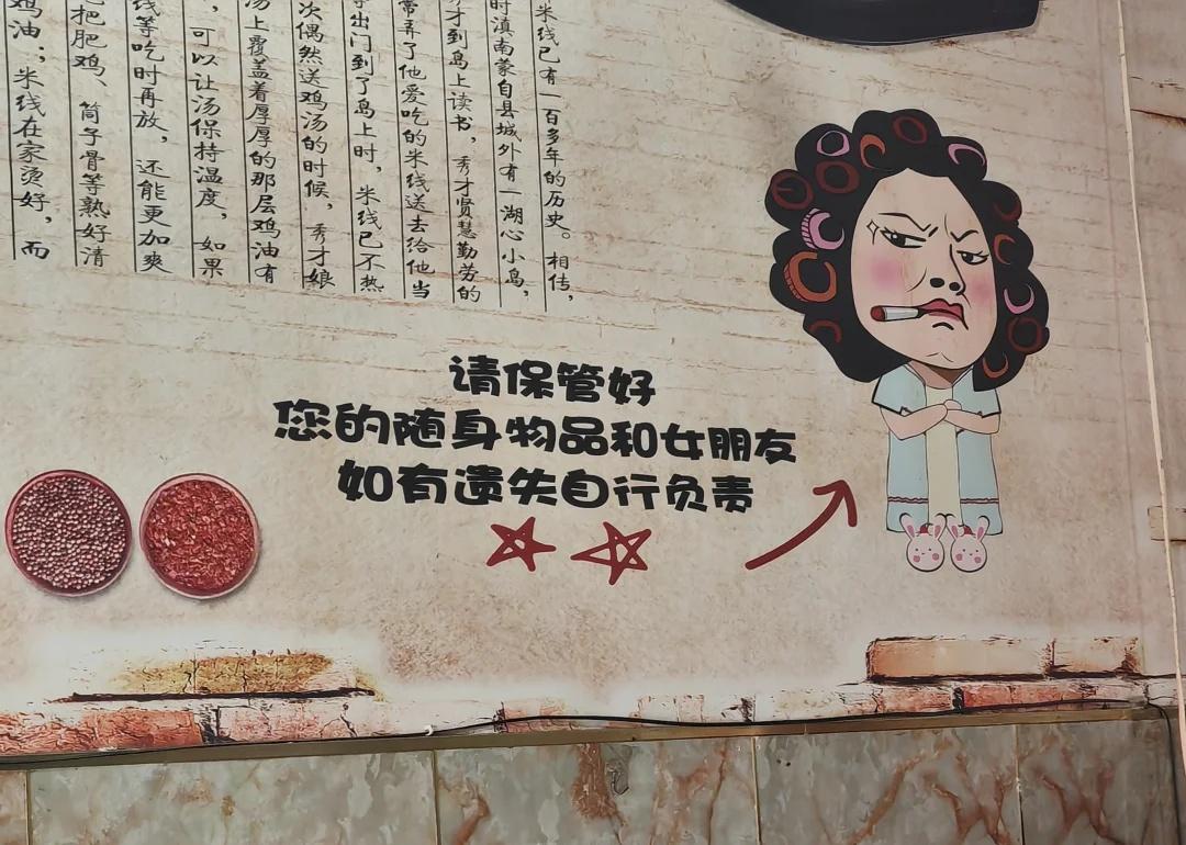 不适 看到这句话很不舒服,将女性和随身物品并列,真的有被冒犯到,已经告知老板整改了,也希望众多姐妹们站出来,新的一年我们要敏锐,也希望不要再看到这样的标语了