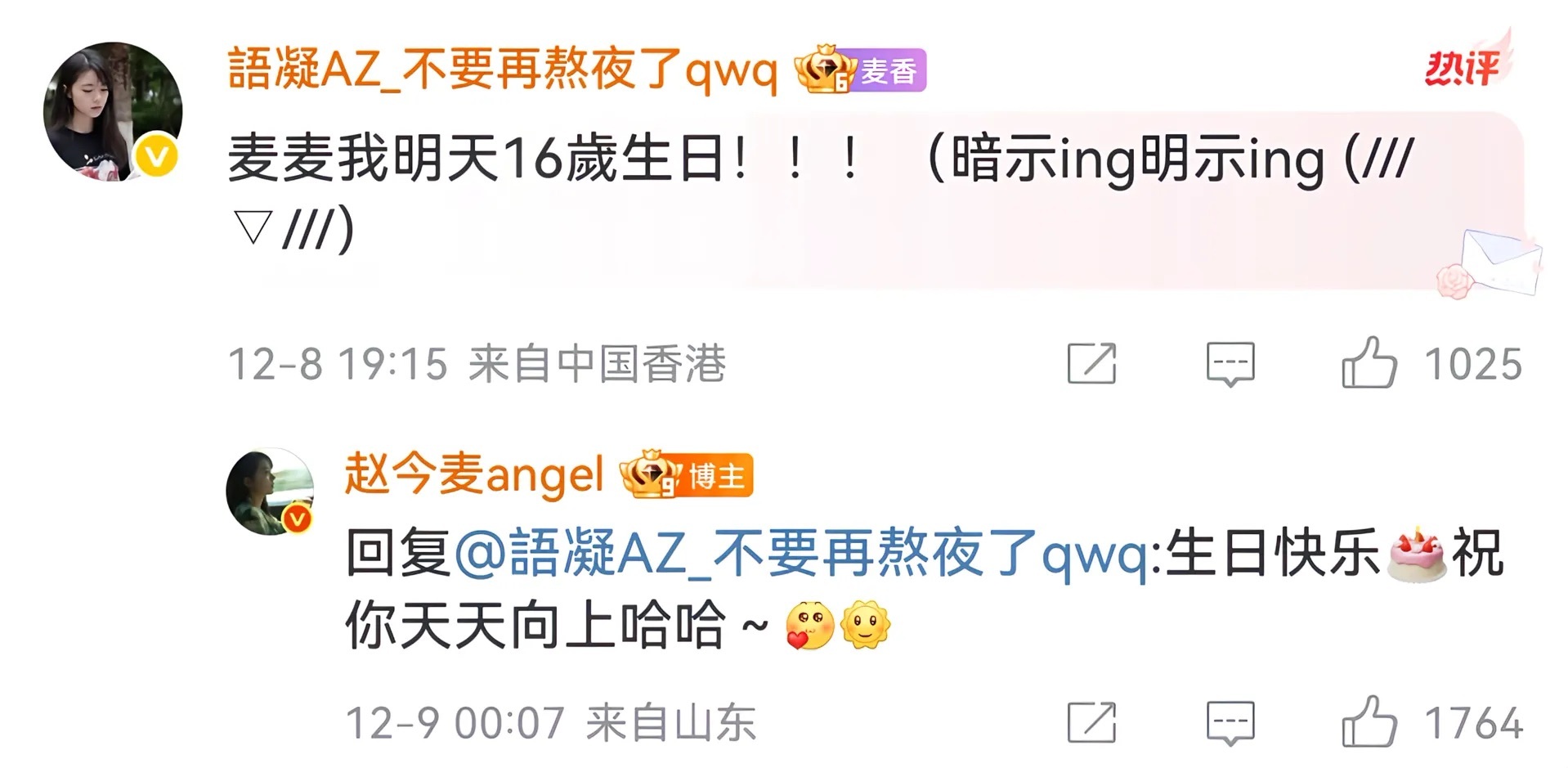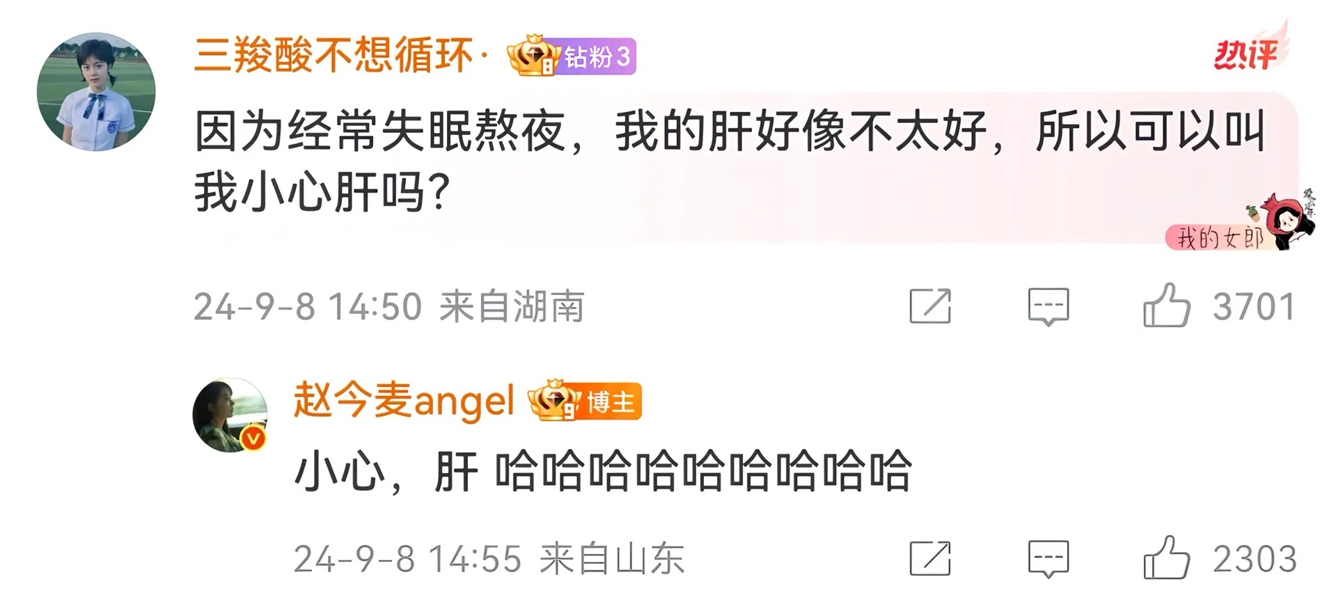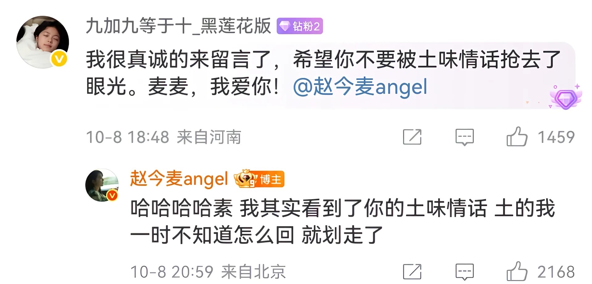麦麦是全世界最好的angel🥲我将永远守护这个真诚的女孩💧💧赵今麦微博回复