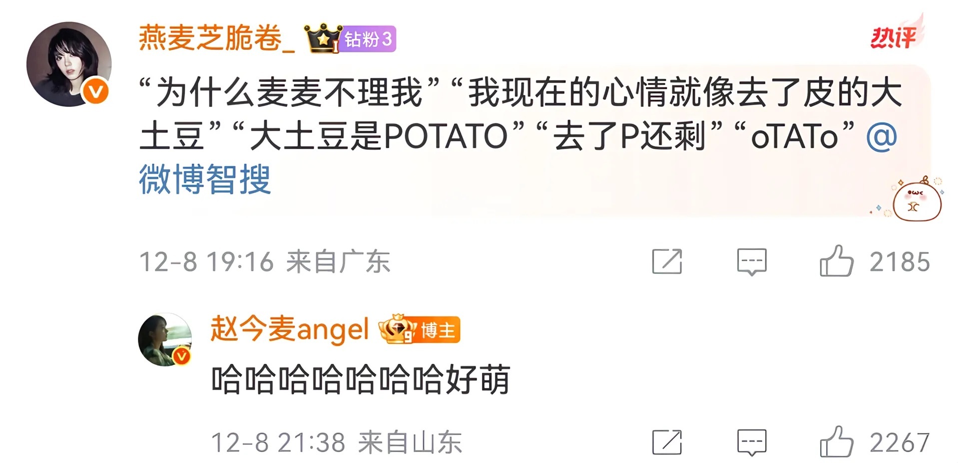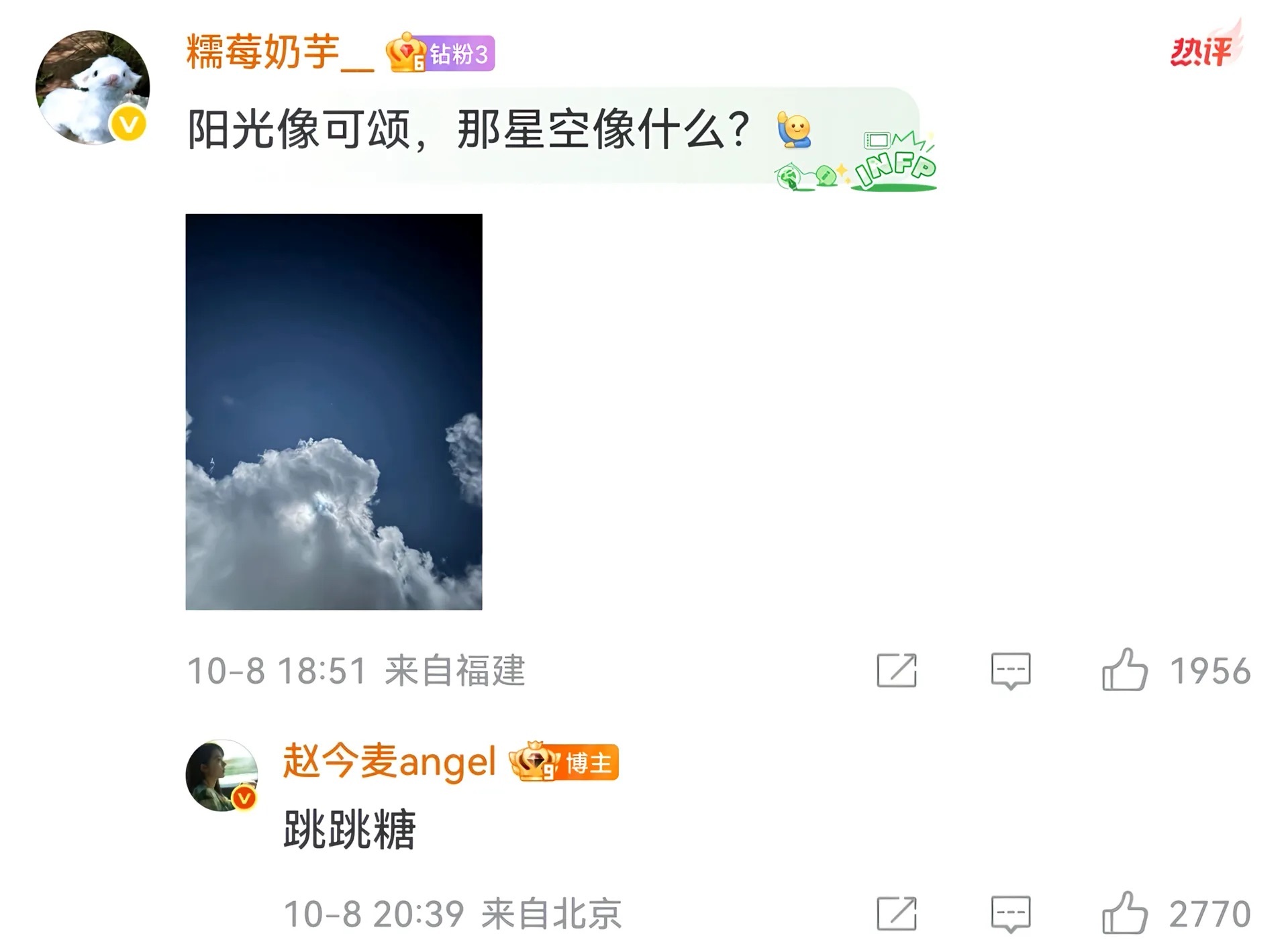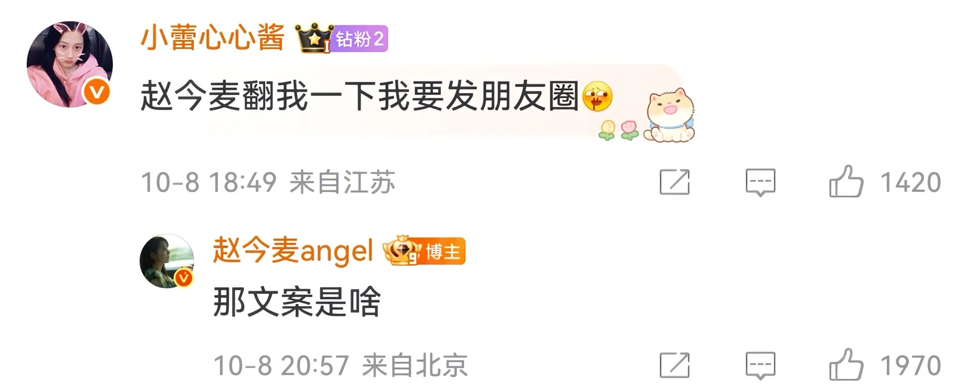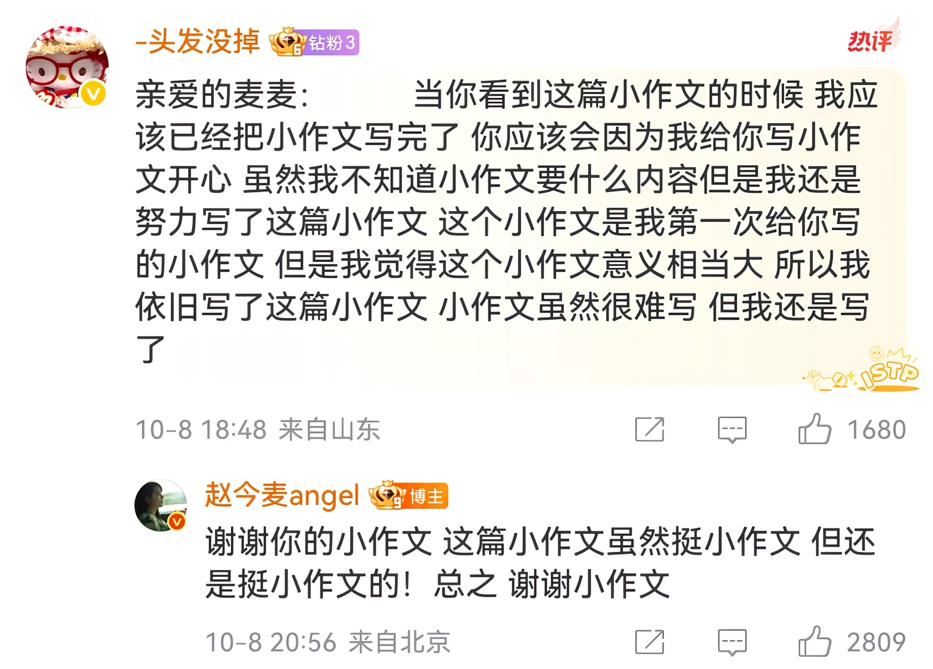 麦麦是全世界最好的angel🥲我将永远守护这个真诚的女孩💧💧赵今麦微博回复