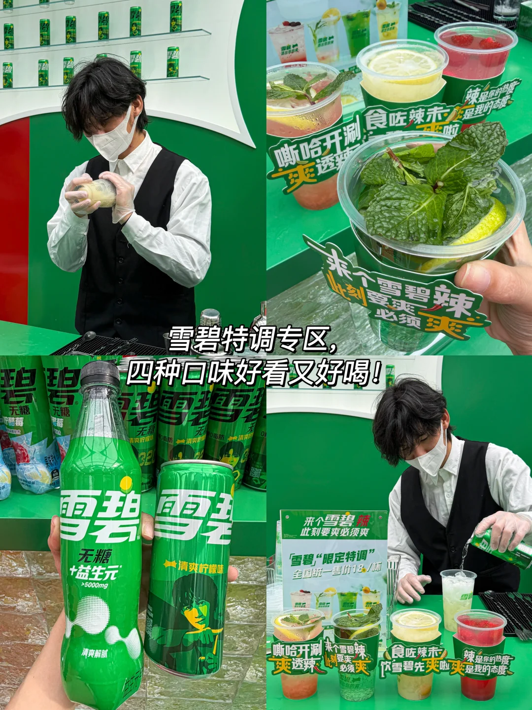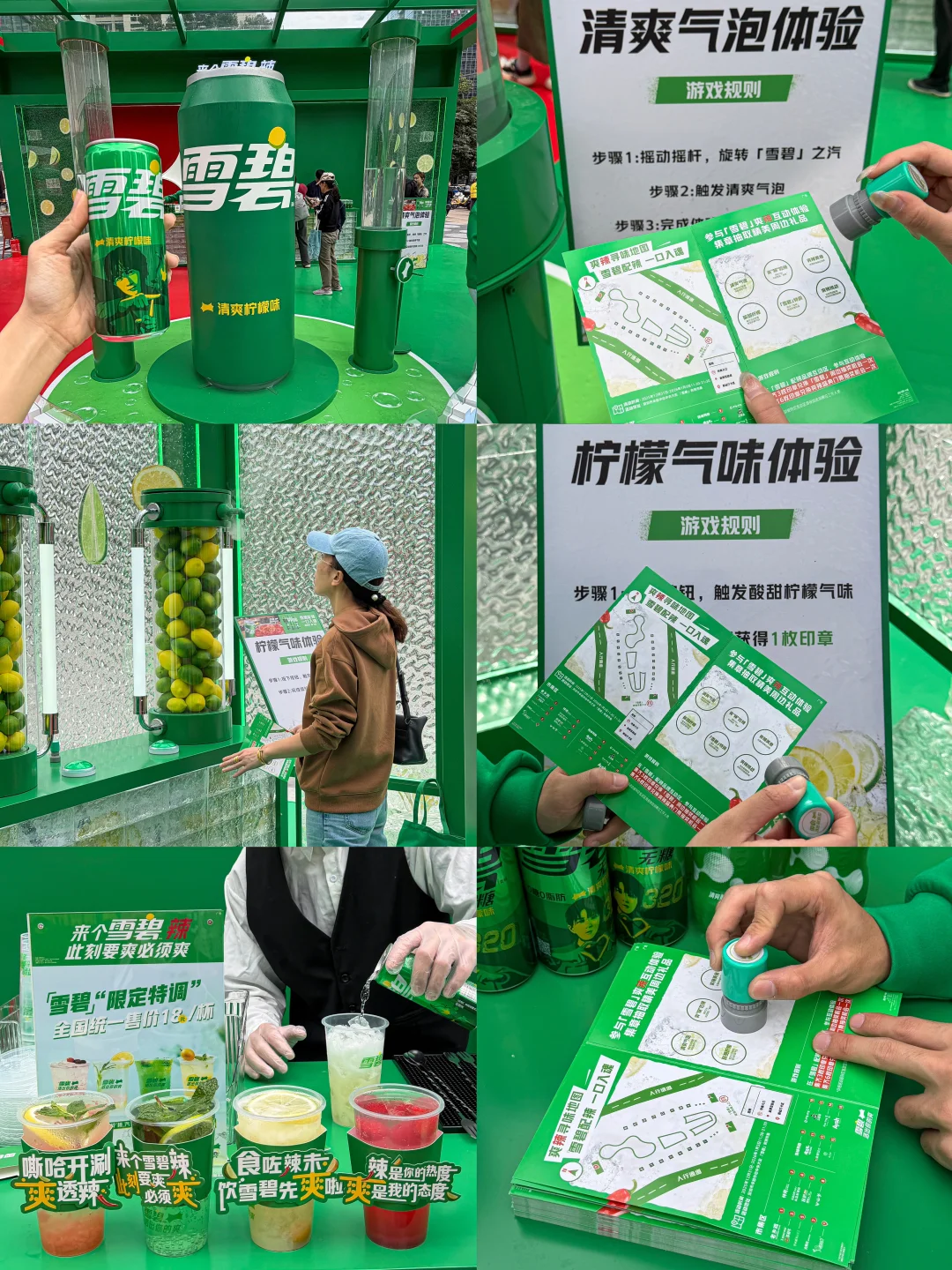 还不过瘾?可以去雪碧吧台来杯雪碧特调!好喝颜值还高!当然不止吃喝啦!还可以玩游戏集章抽奖!