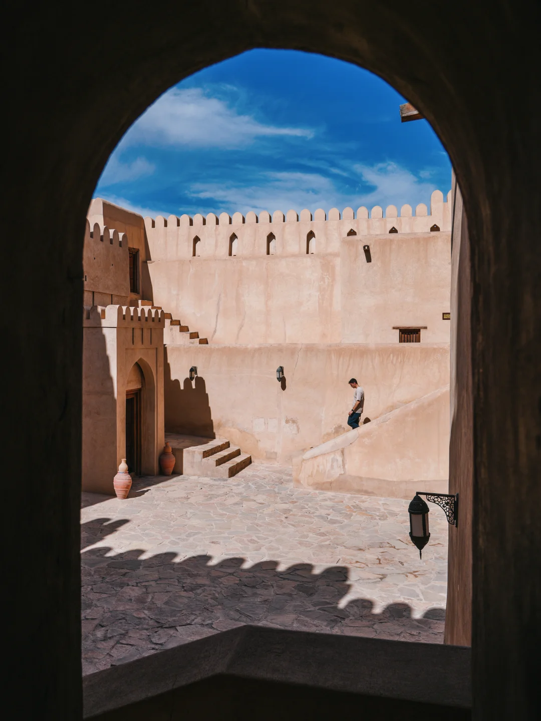 建于17世纪的阿曼亚里巴王朝时期,主塔高24米,顶层平台可360度俯瞰古城和哈贾尔山脉。城堡内建有防御迷宫、古代武器展厅、囚牢等。