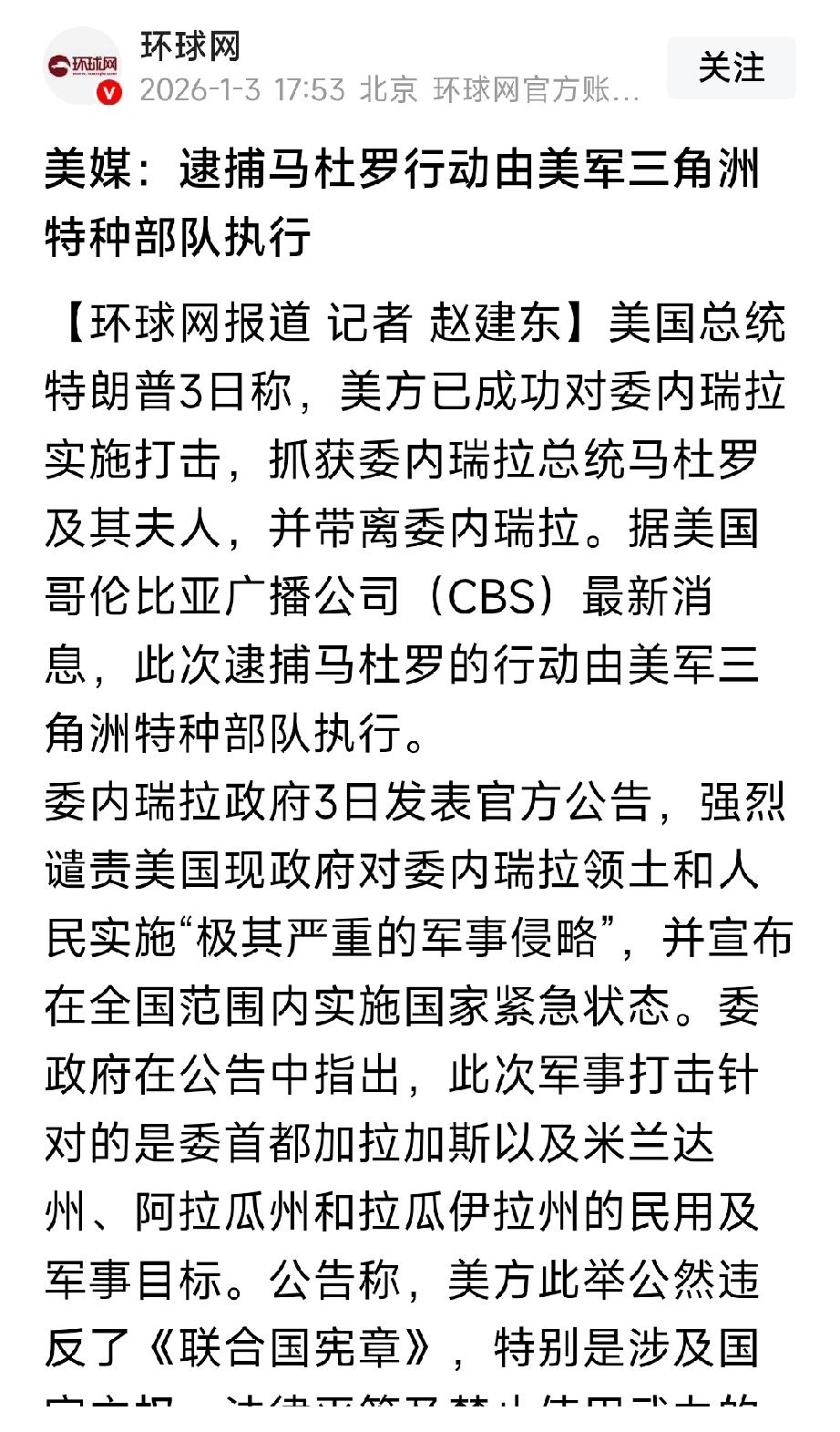 中方强烈谴责:美国对一个主权国家总统动手,深表震惊。
