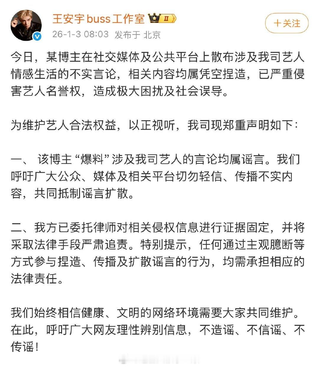 iamroosie鹿晗、檀健次、黄明昊、范丞丞、王安宇、林更新均已发布辟谣声明,