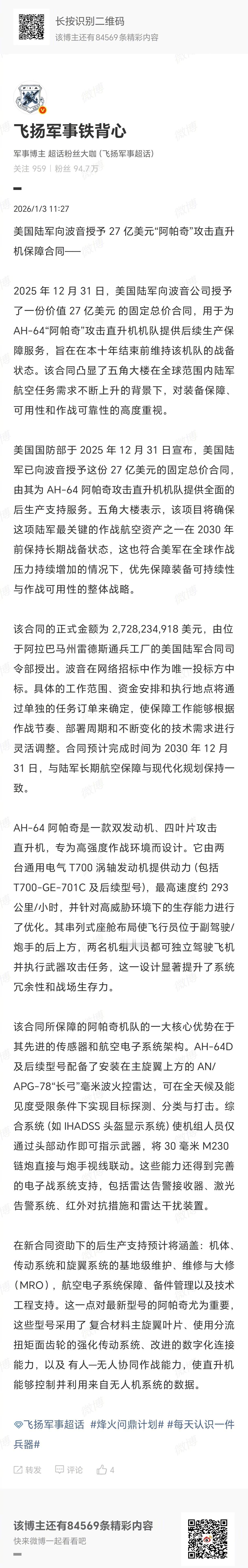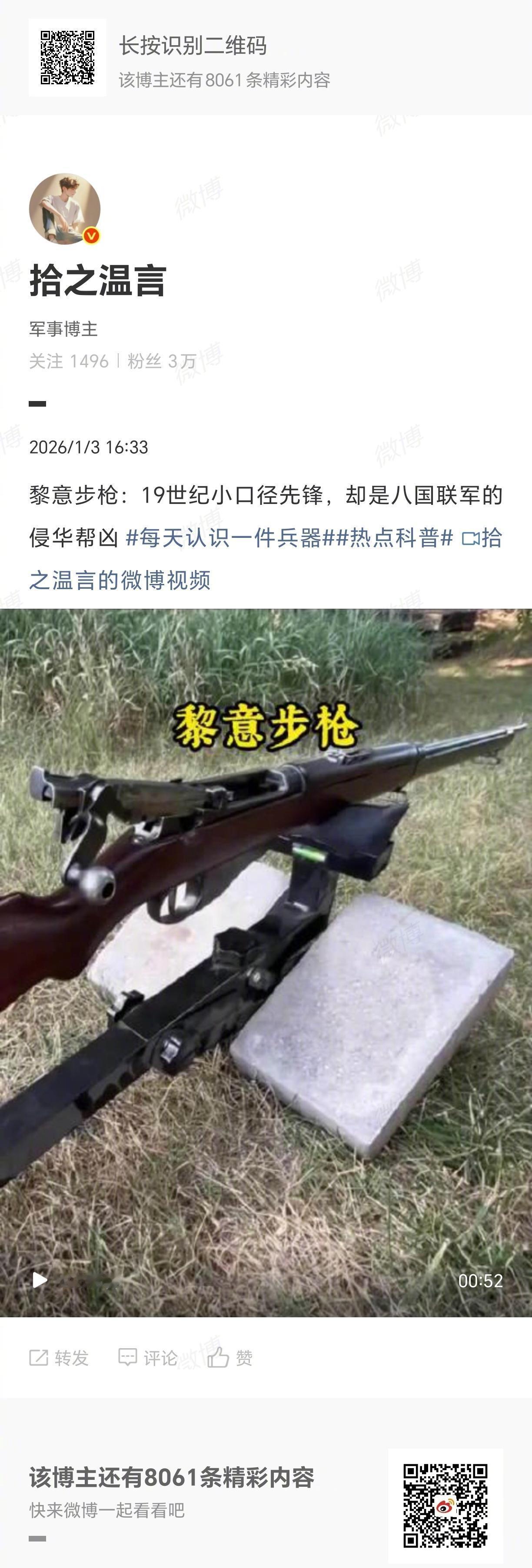 【烽火问鼎计划 ——深度优质物料篇600】硬核装备解读来了!德国将黑豹坦克伪装成美军M10坦克的“格里芬行动”,为何终以失败告终?美军为何斥资27亿美元,只为保障“阿帕奇”直升机机队至2030年?@微博军事 一文汇总深度优质物料解读内容↓↓ @拾之温言:黎意步枪:19世纪小口径先锋,却是八国联军的侵华帮凶。微博正文 @Weapon-肖宁:1944年12月,在突出部战役期间,德国军队发动了由党卫队突击队军官奥托·斯科尔兹内指挥的"格里芬行动"。微博正文 @武器大讲堂:美军二战后的小飞机。微博正文 @飞扬军事铁背心:美国陆军向波音授予 27 亿美元“阿帕奇”攻击直升机保障合同。微博正文 @Armstrong的航空之翼:韩国MAH舰载攻击直升机进行武器射击,其中包括APKWS制导火箭弹。微博正文 @蒋蒋烽火谈:小飞机换大飞机!法国花费13.4亿美元,买两架全球眼替换E-3F。微博正文 @猪霸苍穹:土耳其Roketsan公司研发的BORA💥 近程弹道导弹(SRBM)。微博正文 @醍醐守正君:美式巨兽的利爪与软肋 从委内瑞拉空袭看美军主力装备。微博正文 @邓棋元:“空中炮艇”AC-130重型攻击机。微博正文
