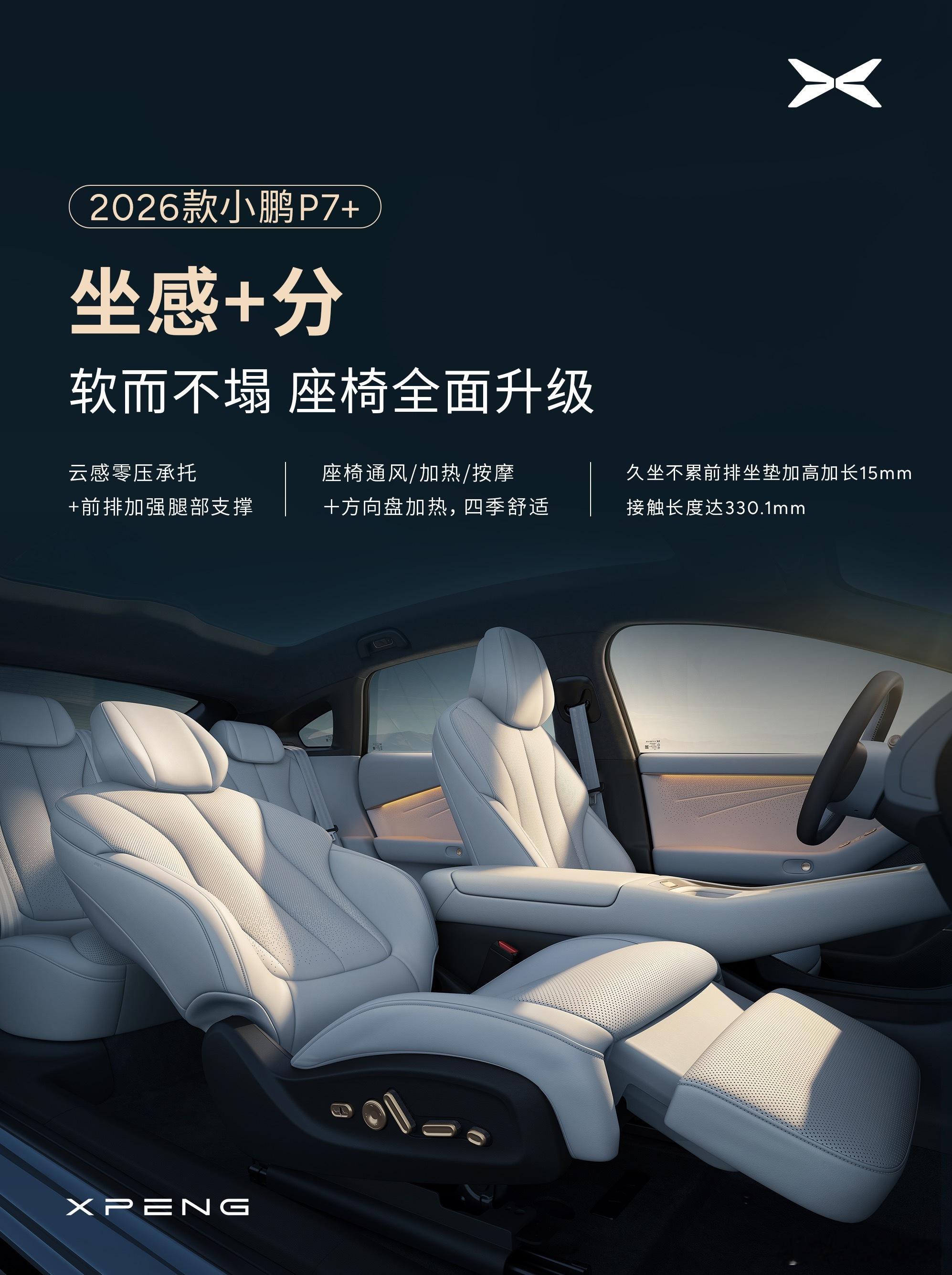 2026款小鹏P7+和G7全国发运了,新款加长坐垫长度,新增电吸门,副驾零重力模式,加强了降噪。还是更推荐小鹏P7+,后排空间太大了,座椅靠背电动调节度数更大适合休息新款小鹏P7+舒适性又进阶了