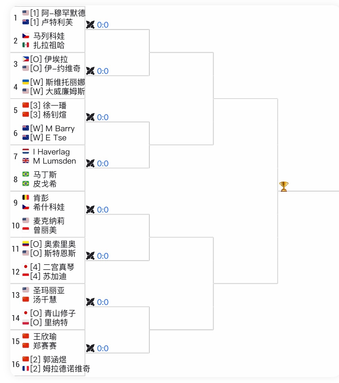 WTA250奥克兰单打签表,王欣瑜vs麦克纳莉,大威廉姆斯vs里内特。双打也很有看点,大威/斯维托丽娜搭档出战。体育大赏网球talking大会网球