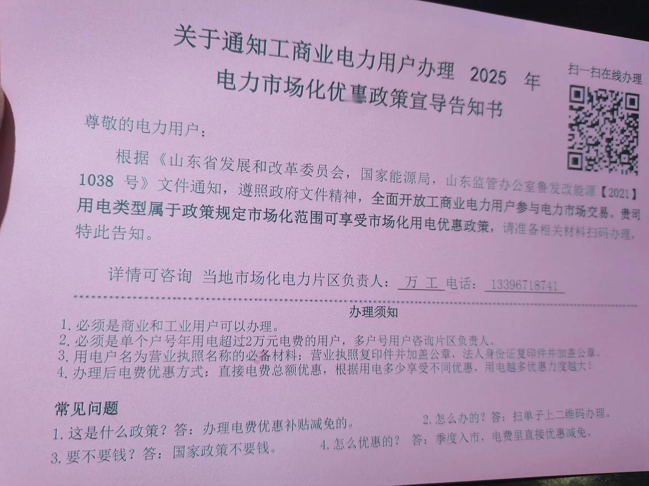 年底防骗子 现在骗子真多,前几天收到一个人送来的单页,说国家出台商业用电补贴,针对年用电超过两万的用户,国家给予相应的补贴,需要自己申请。 刚开始一听这个消息,顿时比较开心,大环境不好,生意不好做,国家出台了各种补贴,这是在拯救实体经济呀,心里很是欣慰。想想什么创业补贴,房贷贴息,自己都没有享受过,这个能有点补贴也挺知足的。 进今天正好有空,就寻思扫码看看,需要准备什么资料吧,一看需要准备的还不少,需要营业执照号,身份证,银行卡等等,还需要房产证号,突然觉得不咋对,就打了市政热线12345,结果咨询后,告诉我目前青岛这边还没有接到这方便的补贴政策,还好及时止损了,有惊无险。 天上不会掉馅饼的,还是踏实的干吧。年底骗子多,大家多小心,遇事多思考吧,小心上当。