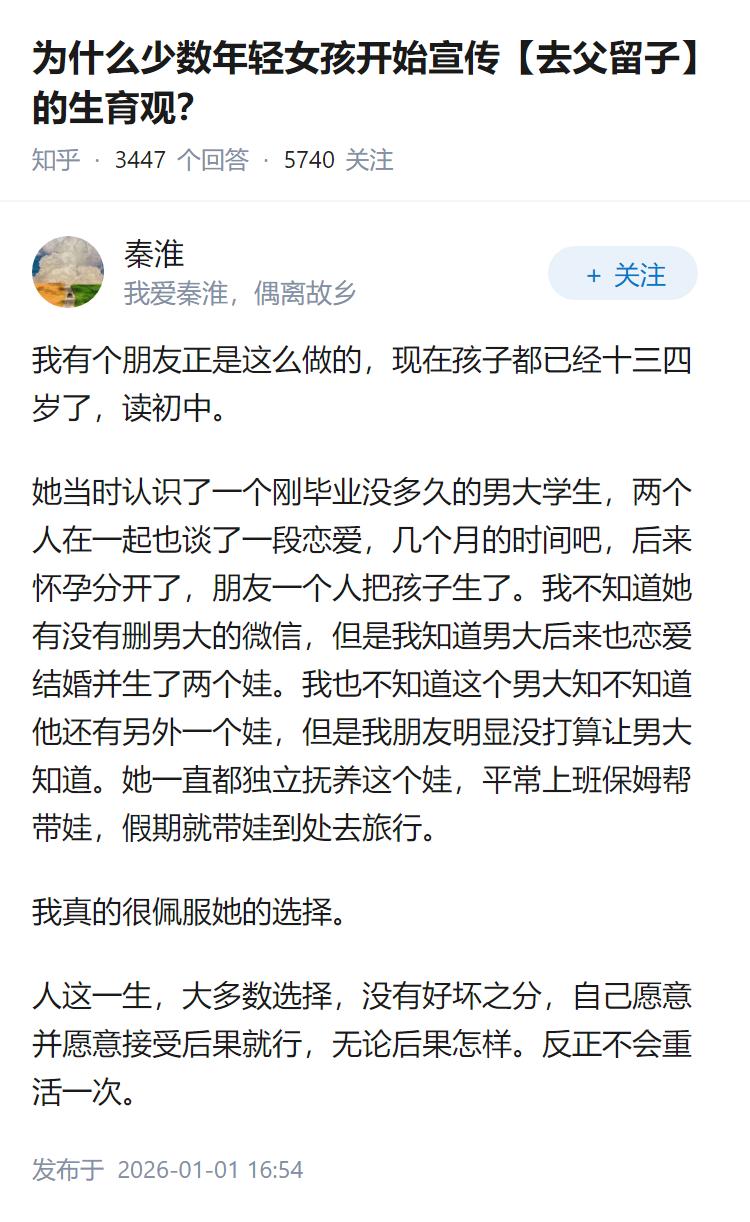为什么少数年轻女孩开始宣传【去父留子】的生育观?
