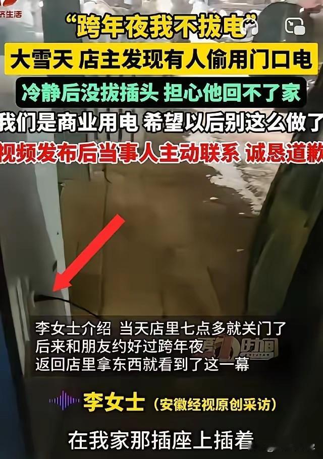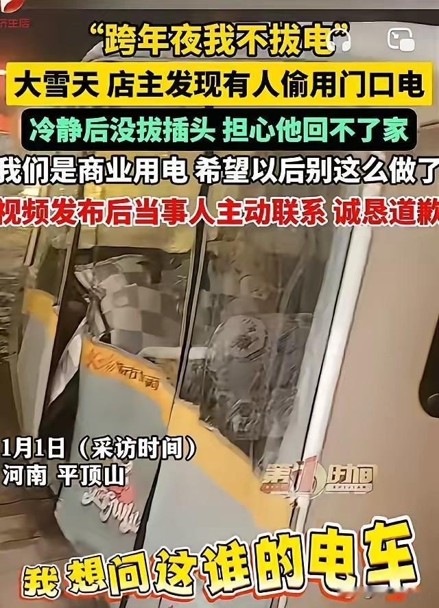 河南平顶山,李女士为了方便自己充电,在店门口装了一个插座。跨年夜这天,她半夜回店里拿东西,发现一辆电动三轮在她的插座上充电,李女士非常气愤,因为她店里是商业用电,比民用电贵很多,这人竟然把自己家的电当做自己家的用?李女士气愤之下吐槽,没想到却迎来一个意想不到的结局。 跨年夜的河南平顶山,李女士半夜回自家店铺拿东西,刚到门口就气得血压飙升!自己为了方便充电装在店门口的插座,居然被一辆电动三轮车占着用,关键是她店里用的是商业用电,价格比民用电高出一大截,平白无故被人蹭电换谁都得火大。 李女士在街边开了家小店铺,平时需要给收银设备、照明灯具还有自己的电动车充电,为了省事,就特意在店门口装了个插座,平时锁门的时候也没特意把插座断电,想着偶尔自己应急用用。 谁能想到,这插座竟然成了别人的“免费充电站”。跨年夜的晚上,外面到处都是辞旧迎新的热闹声响,李女士想起第二天要用的货单落在店里,就裹着厚外套出门,大半夜的街道上没什么人,远远就看到自家店门口停着一辆电动三轮车,车屁股还连着一根线,正插在她的插座上。 走近一看,插座上的指示灯亮着,显然三轮车正在充电。李女士越想越气,商业用电的单价差不多是民用电的两倍,自己每个月的电费账单都要比别人高出不少,这陌生人倒好, 一声不吭就来蹭电,简直把她的电当成了自家的。她站在原地盯着那辆三轮车看了半天,想等车主出现讨个说法,可等了十几分钟,街上还是空荡荡的,连个人影都没有。 无奈之下,她只能先拔掉充电线,把自家插座的电源关掉,然后进店拿了东西就回了家。 回家后李女士越想越憋屈,就把这事拍了照片发到了网上吐槽,还特意强调了商业用电和民用电的差价,说自己平白无故被占便宜,真是哑巴吃黄连有苦说不出。 她本来就是想发泄一下情绪,没想到这条吐槽的帖子竟然火了,网友们纷纷留言讨论,有人说这车主太没素质,占小便宜占得理直气壮, 也有人说李女士的插座装在外面,确实容易被人当成公共充电点,建议她以后加个锁或者装个电表。 更让她没想到的是,帖子发出的第二天一早,就有人找上门来了。来的是一位六十多岁的大爷,正是电动三轮车的车主, 大爷一进门就满脸歉意地跟李女士道歉,说自己是附近小区的居民,跨年夜那天晚上出门办事,电动车半路没电了, 看到店门口的插座没锁,就抱着侥幸心理插上去充了一会儿,想着大半夜的应该没人发现,充了半小时左右就回家了,没想到给李女士添了这么大的麻烦。 大爷还特意带来了五十块钱,说知道商业用电贵,这点钱就算是补偿电费,不管够不够,都是自己的一点心意。 李女士本来一肚子火,看到大爷这么诚恳,气也消了大半,她推辞着不肯收钱,说大爷也不是故意的,以后注意点就行。 可大爷坚持要给,说做人就得光明磊落,不能占别人的便宜。两人推让了半天,最后李女士只收了十块钱,说就当是象征性的电费,权当买个教训。 这事还没完,李女士把大爷上门道歉的经过又发了一条帖子,没想到引来了更多网友的点赞,大家都说大爷知错就改的态度太赞,李女士也算是宽宏大量。 还有附近的居民看到帖子后,特意提醒李女士,说可以给插座装个带锁的盒子,或者装个智能电表,这样既能方便自己用,又能防止别人蹭电。 李女士听了大家的建议,当天就去买了个带锁的插座盒装上,彻底解决了这个隐患。 一场因为蹭电引发的风波,最后竟然以这样暖心的方式收尾,李女士也感慨,本来以为是件糟心事,没想到还收获了这么多善意和建议。生活里的小摩擦在所难免,多一点理解和坦诚,很多事情就能迎刃而解。 么 对此,你们有什看法,欢迎评论留言~