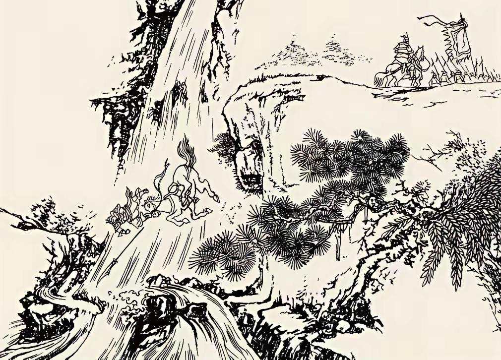 路边,一群百姓正扶老携幼匆匆忙忙赶路,突然看到一员战将骑着高头大马,手...