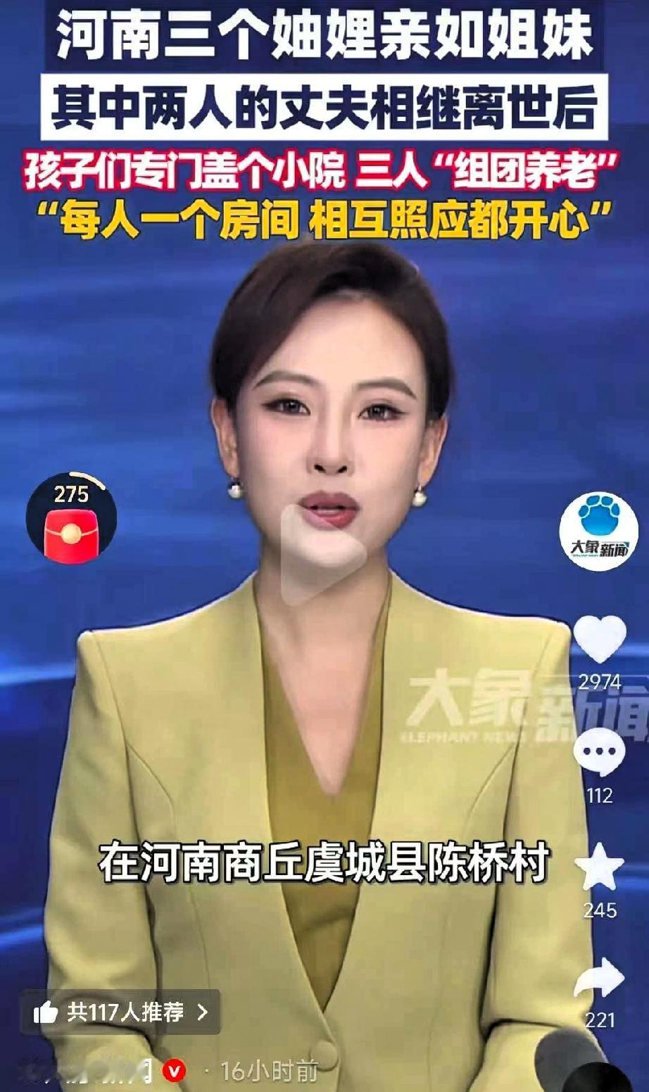 涨知识了!河南有3妯娌火了,原因是3妯娌情况特殊,82岁的大嫂身边有老伴陪伴,75岁的二嫂和70岁的三嫂,却早已失去了伴侣。 孩子们大多忙着自己的工作和家庭,不能时时陪伴左右,两位老人常常一整天都没什么人说话,日子过得有些冷清。 晚辈们看在眼里、记在心上,三兄弟家的13个后辈聚在一起商量,最终决定翻新老三家的房子,让三位妯娌住到一起抱团养老。 这个提议正好说到了老人们心坎里,她们平日里相处就十分和睦,从没红过脸,自然一拍即合。 搬去一起住之后,三位老人白天一起择菜做饭、唠嗑解闷,晚上坐在院子里聊聊过往,冷清的屋子一下子有了烟火气。后辈们只要有空,就会带着营养品回家探望,一大家子围坐在一起吃饭,满屋子都是欢声笑语。 网友们看完纷纷表示认同,有人说这种养老方式既不孤单,又能互相照应,值得参考;也有人感慨,妯娌之间能做到几十年和睦相处,靠的全是彼此的包容和体谅,但凡有一个人爱计较,都过不到一块儿去。 其实养老的方式有很多种,住养老院也好,靠子女照料也罢,核心都是让老人晚年过得舒心踏实。这种亲情抱团的养老模式,没有轰轰烈烈的噱头,却用最朴素的陪伴,给出了温暖的答案。