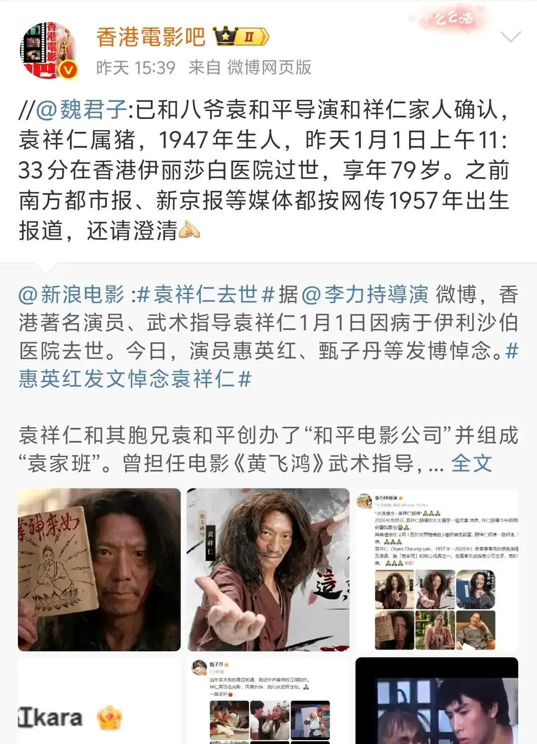 69岁?假的!真实年龄惊掉下巴 港媒集体翻车。袁祥仁并非1947年生,而是1945年1月2日,整整多活两岁。香港电影导演会晒出哥哥袁和平提供的家庭档案,白纸黑字,出生登记编号HK-1945-012-****,官方盖章。 这乌龙怎么来的?邵氏旧合约、资料库录入全写错,一错抄百错。金像奖组委会紧急改悼词,21家媒体连夜删稿。国家电影资料馆7月办回顾展,4K版《太极张三丰》片头会标正确生平。 我翻旧报纸,1963年邵氏招工表就写23岁,对得上。徐俊也作证,2022年片场喊他77岁,当时谁也没较真。数字会骗人,胶片不会。人走了,作品还在,年龄差两岁,功夫不差分毫。