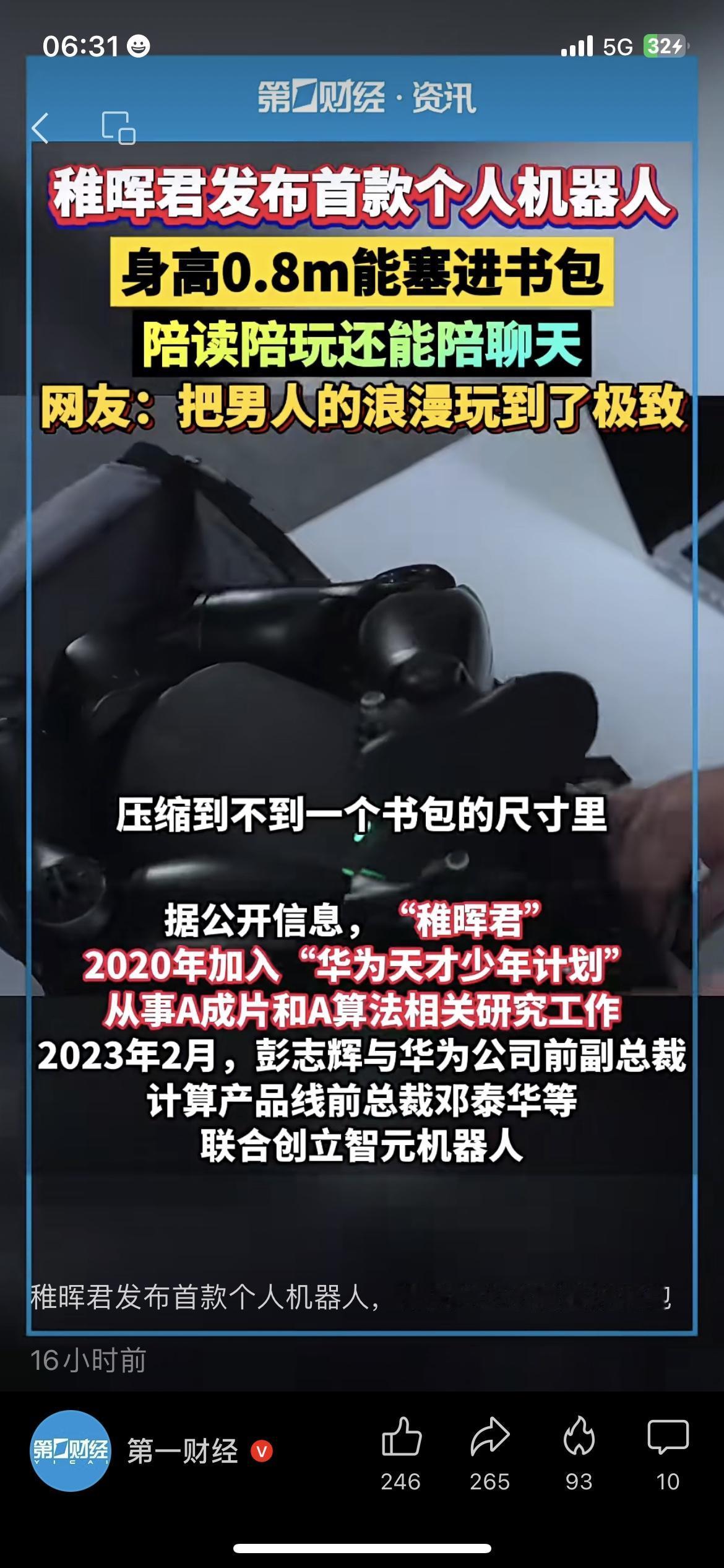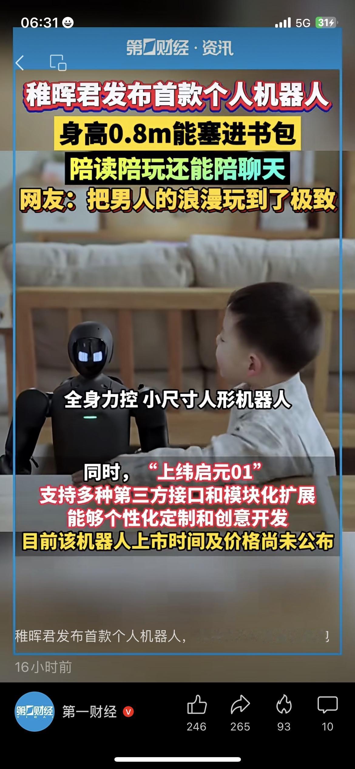 稚晖君迷你机器人来了✅0.8米高可塞书包陪娃陪读科技生活 科技圈炸锅!稚晖君首款个人机器人正式发布,0.8米身高直接能塞进书包,小巧又实用。 这款机器人功能超全,能陪孩子读书辅导作业,还能日常陪聊解闷,网友直呼把科技浪漫玩到了极致。 深圳宝妈刘女士满心期待,直言只要定价合理,立马给孩子入手一台当早教帮手。 加粗:目前该机器人仅为样机,2025年暂不贡献企业实际业绩。 你想给家里孩子入手这类迷你机器人吗?你觉得它能替代传统早教机吗?家庭机器人