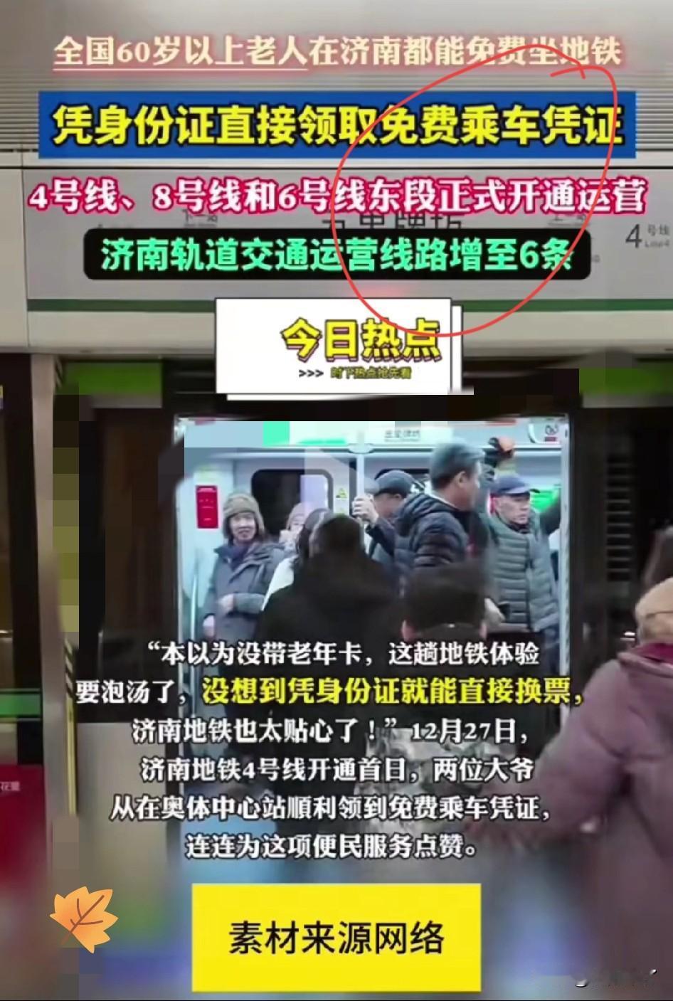 济南这波操作,直接给我看愣了。 全国所有60岁以上的老人,注意,是“全国所有”,不管啥户籍、来自哪个省份,只要踏入济南地界,公交地铁随便坐,全程免费畅行,这格局简直拉满到极致! 对老年人来说,出门旅游最头疼的从不是景点门票,而是不会扫码、不懂购票的手足无措。 济南恰恰精准戳中这个痛点,老人只需亮一下身份证,甚至证件照片就能轻松上车,不用求人、不用折腾,这份出行的从容与体面,远比省下几块车费更珍贵! 看似“烧钱”的政策,实则藏着城市的大智慧——既用实打实的人文关怀温暖了全国老人,又意外带动老年游客数量同比暴涨32%,顺带拉动旅游消费、攒下满满好口碑。 城市的温度从来不是高楼大厦堆出来的,而是藏在对弱势群体的包容与善待里!