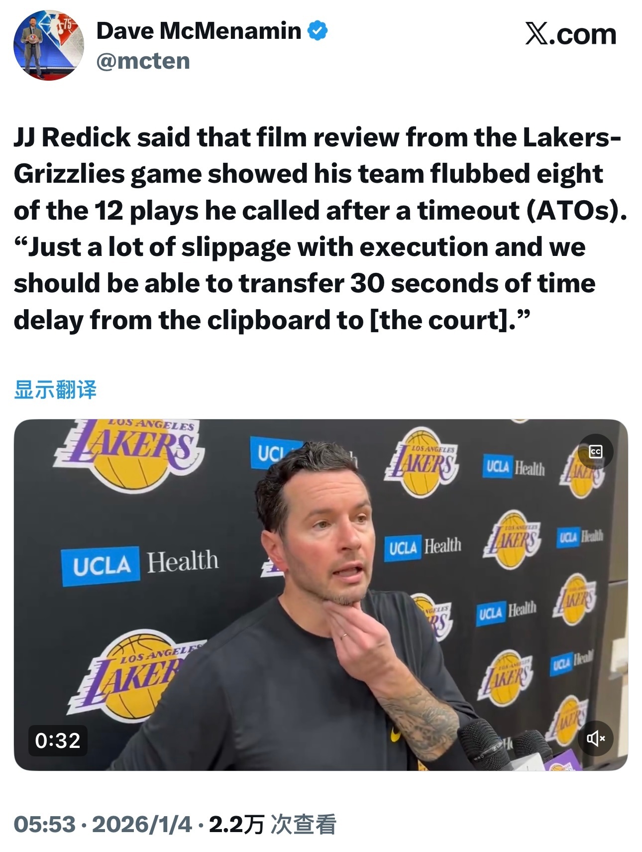 继续甩锅!雷迪克批评球队执行力:在昨天的比赛中执行了12次ATO战术,但里面有8次执行失败,我们曾尝试重新执行其中2次,仍未能正确运行。有一次我们甚至尝试了三次,依旧不到位,可见我们在战术执行层面存在严重疏漏。