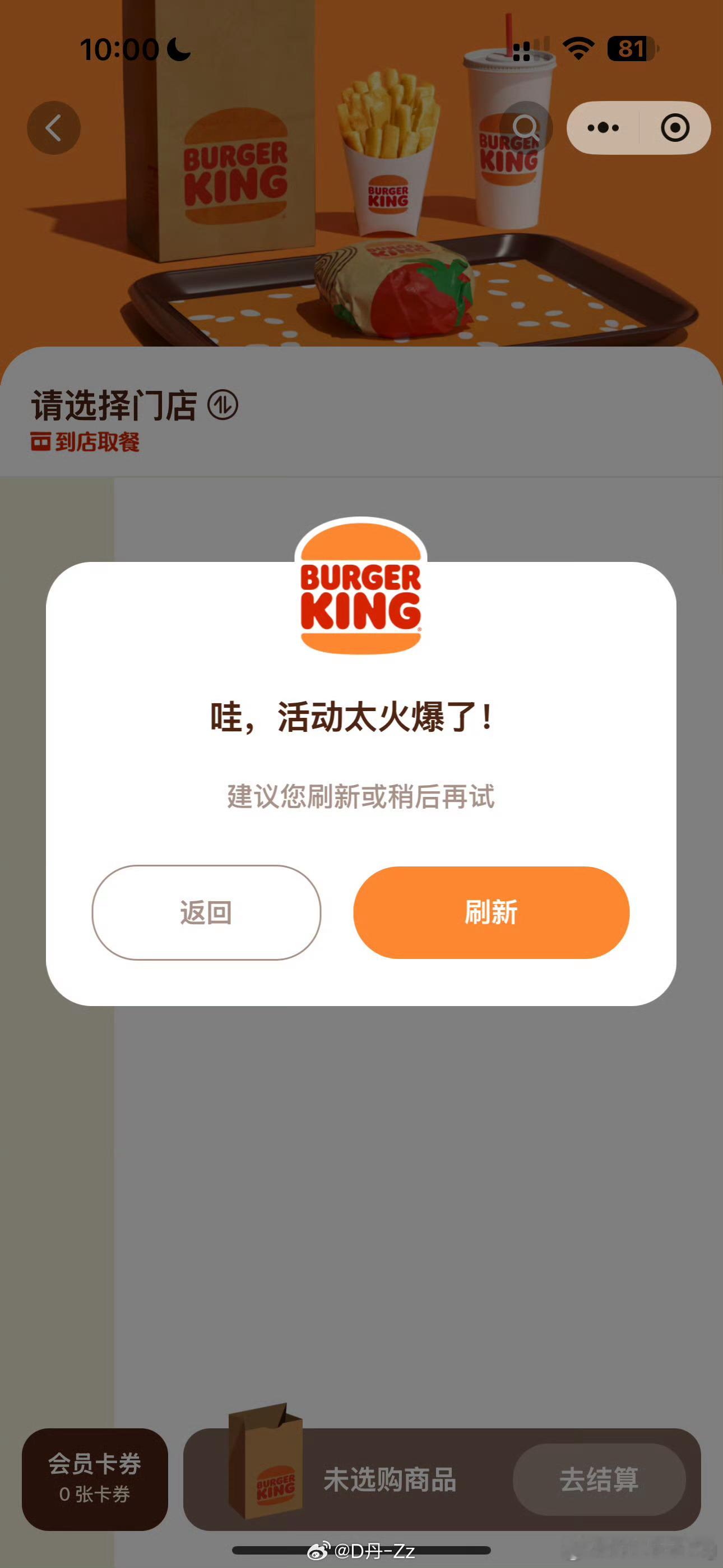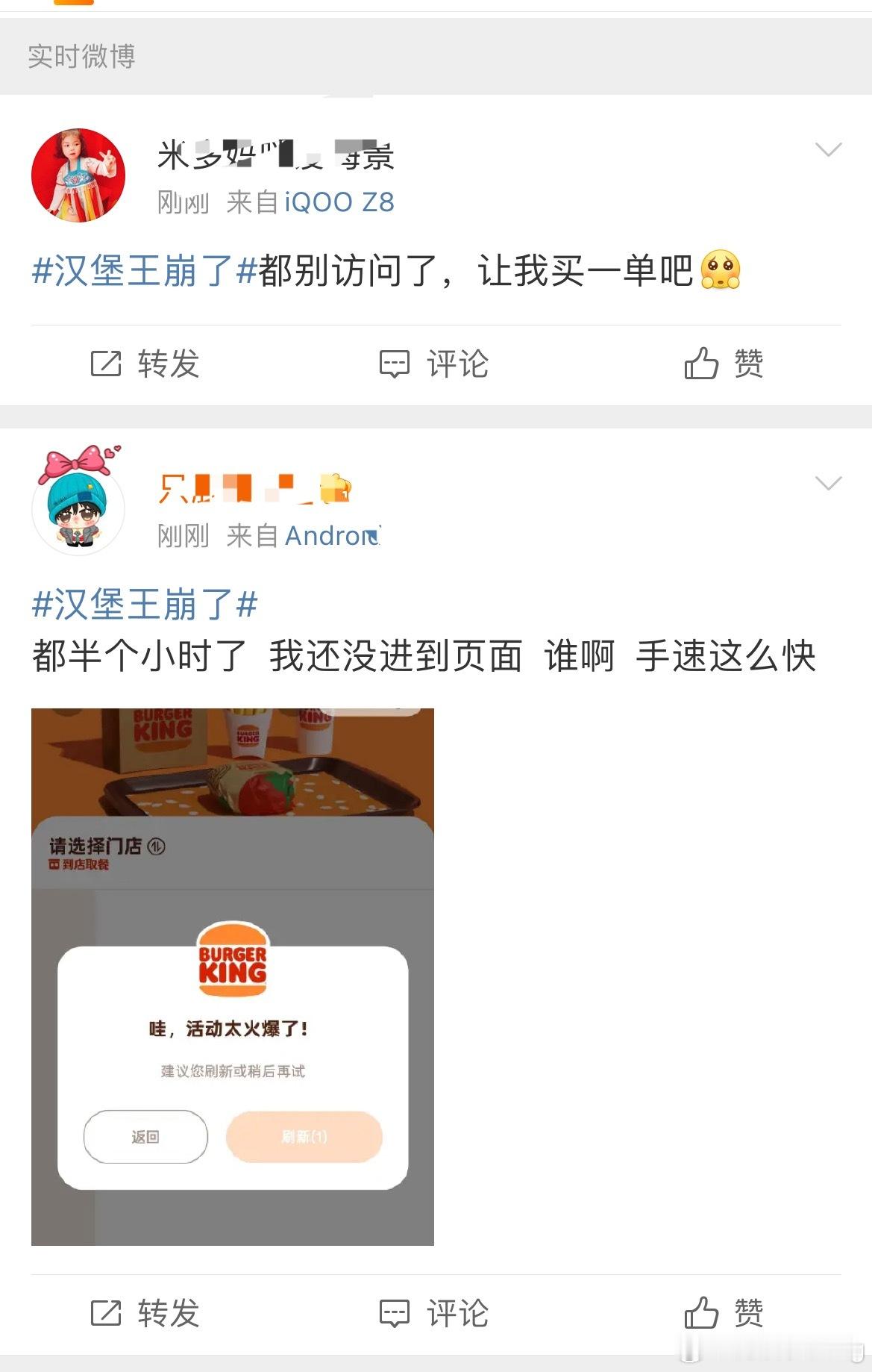 汉堡王崩了田栩宁代言汉堡王 一下子涌进得粉丝客流量太大…汉堡王点单小程序直接崩了…