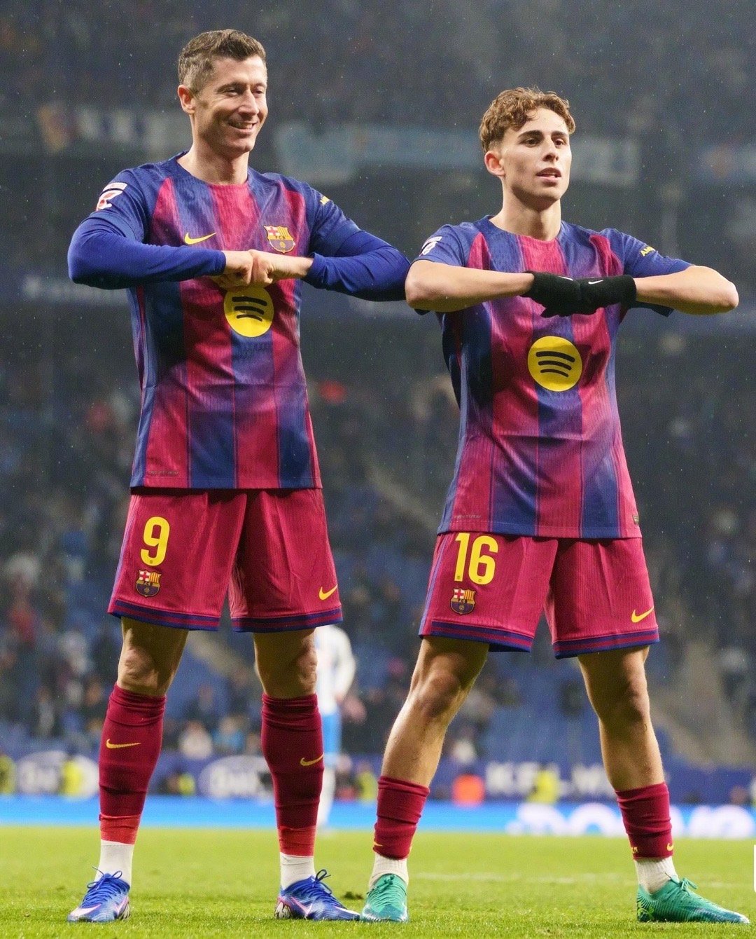 西班牙人vs巴萨😽莱万和费尔明的发型不一样,表情不一样,球衣款式不一样,球裤