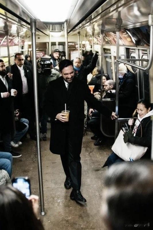 纽约市市长佐兰·马姆达尼乘坐地铁前往市政厅,正如《纽约客》杂志在他赢得选举后对他的描述一样。