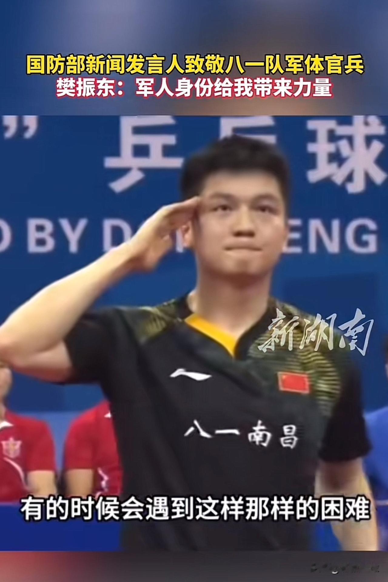 樊振东为何这么正直?原因在这里: 樊振东说:八一队的时候,我首先是军人,然后是运动员! 在八一队的时候,我学到了一个是战斗力,另一个是力量。在赛场上,肯定会遇到很多困难,很多挫折,但我不会轻言放弃,更不会退缩。 这就是八一队带给樊振东的 DNA。 如果大家注意,直到现在,樊振东在严肃场合,比方说升旗时,会自觉地把手贴近裤缝,那是一个标准姿势[赞][赞] 这就是我认为,八一队这段经历,锻造了樊振东,也成就了樊振东,这大概就是你会感觉樊振东给人正直的原因。